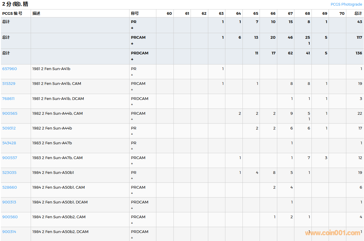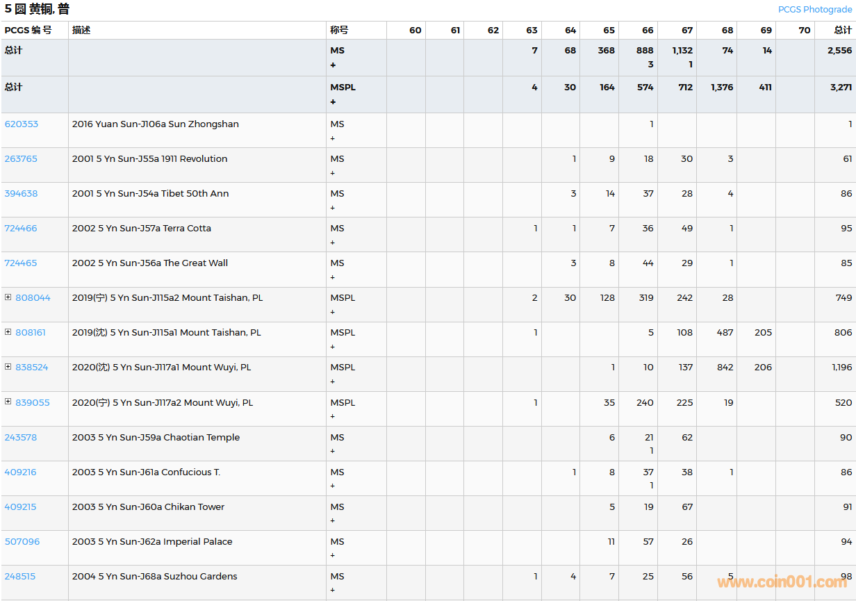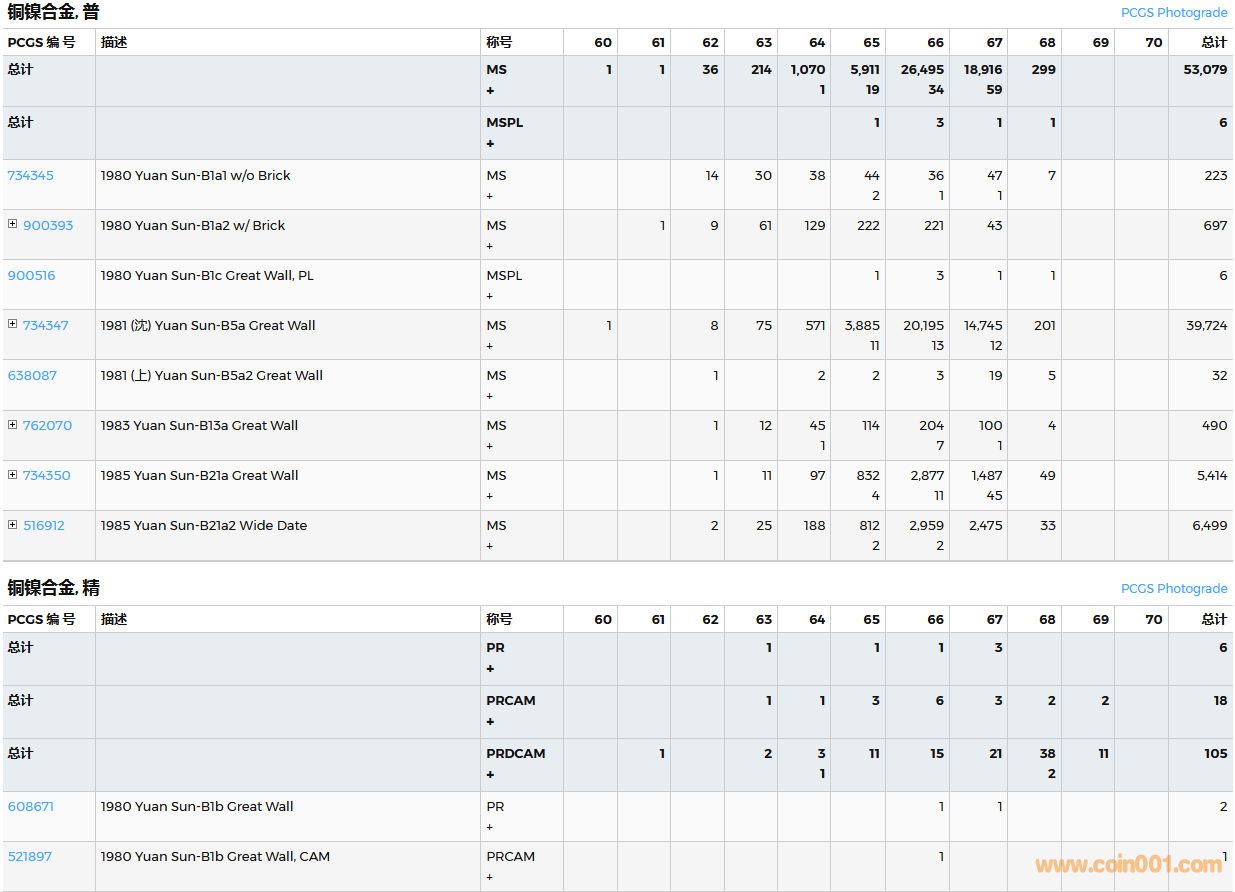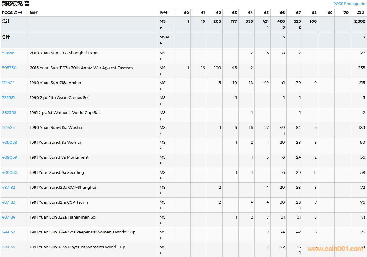 PCGS硬幣評(píng)級(jí)數(shù)量報(bào)告( ..