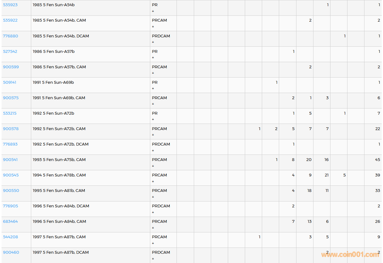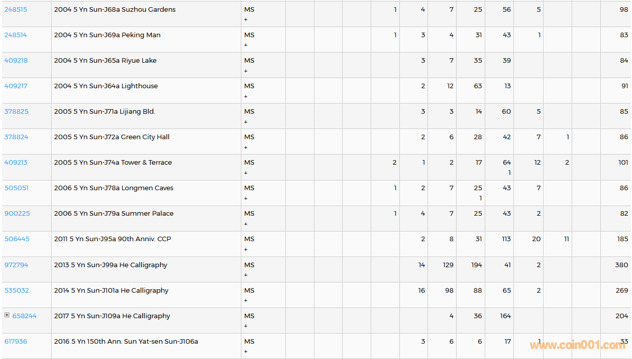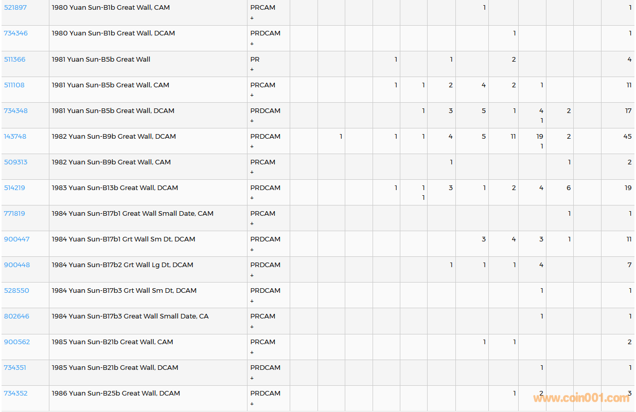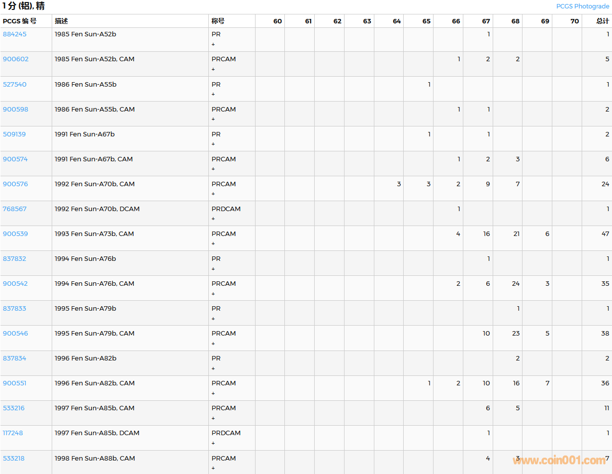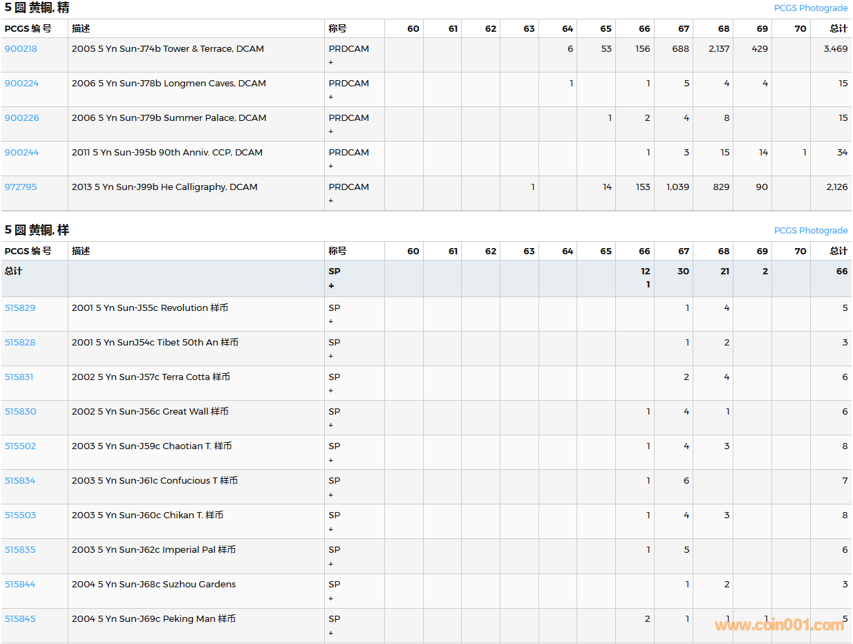 PCGS硬幣評(píng)級(jí)數(shù)量報(bào)告( ..