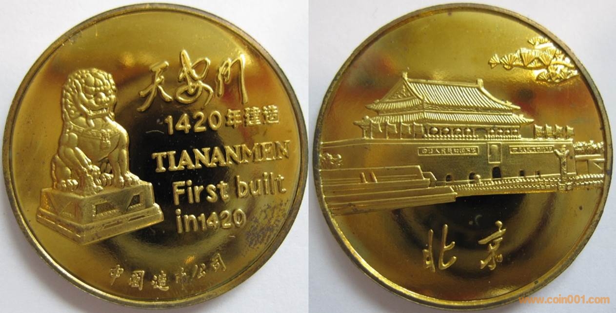 1980年制造,黃銅精制27mm,上幣發(fā)行。正面為有年號黑體字款宮燈,反面為麒麟。此枚章為造幣廠工作章。參考價:8000-15000。