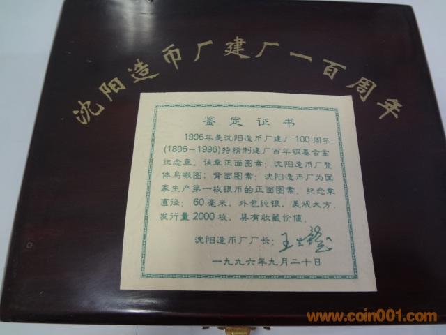 沈陽造幣廠100周年60毫 ..