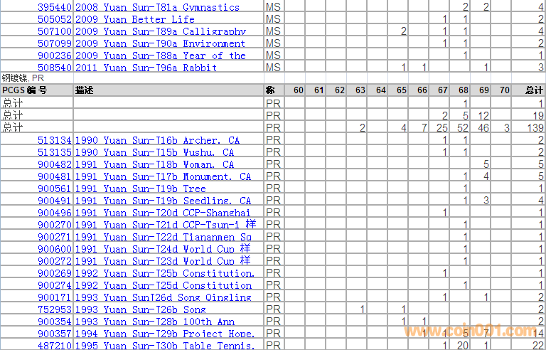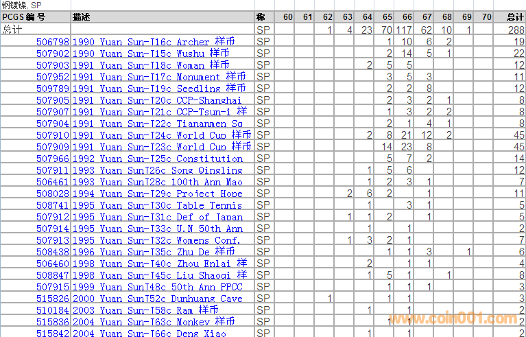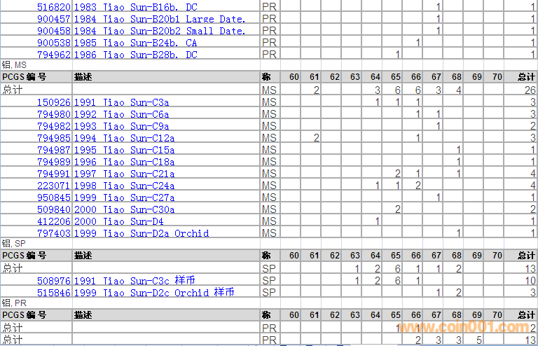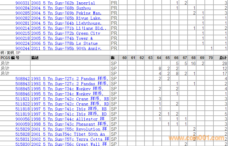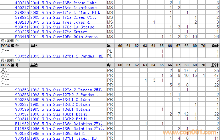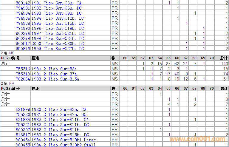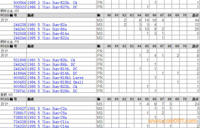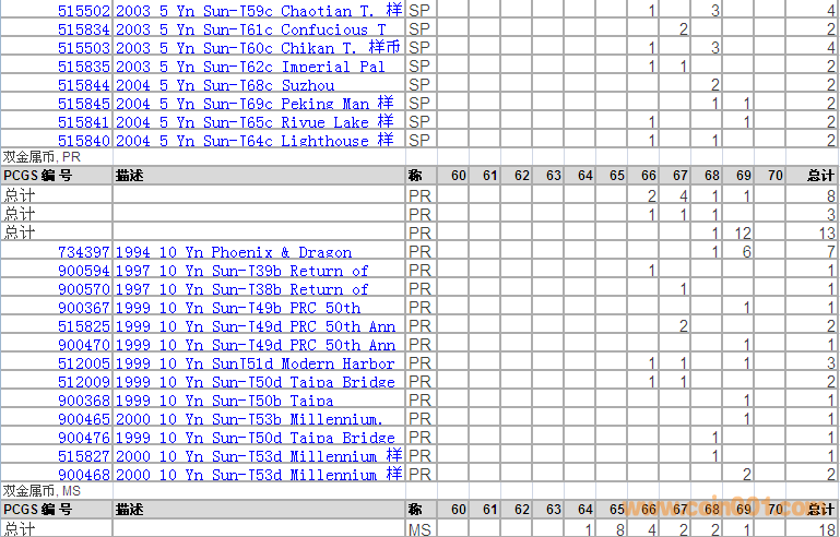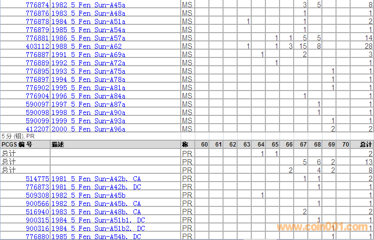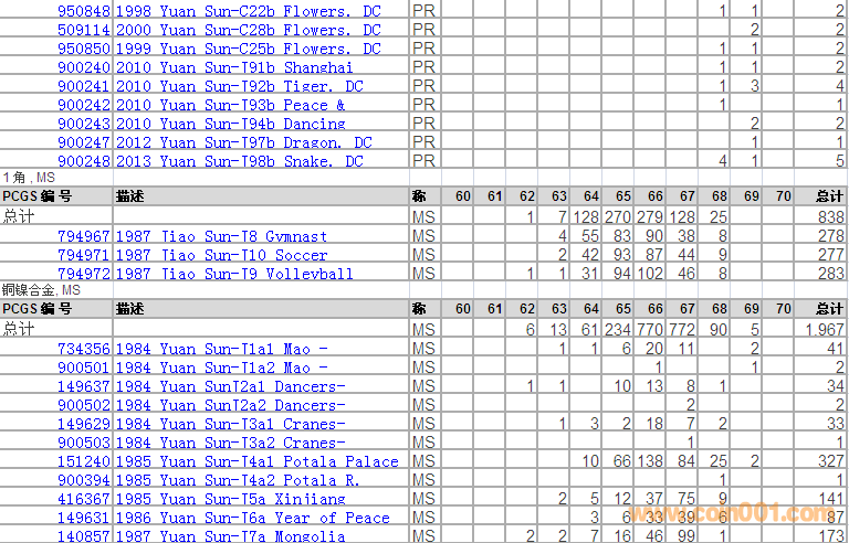 PCGS硬幣評級分數(shù)分布 ..
