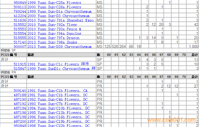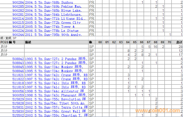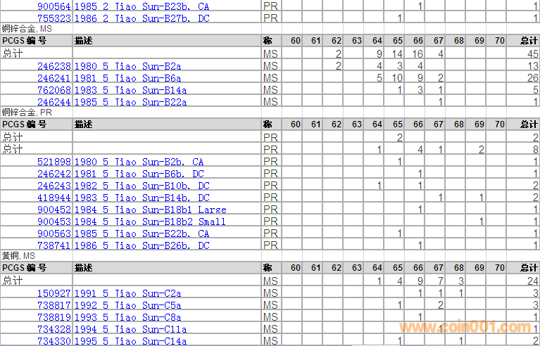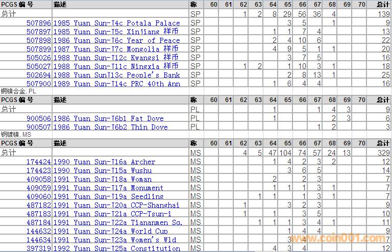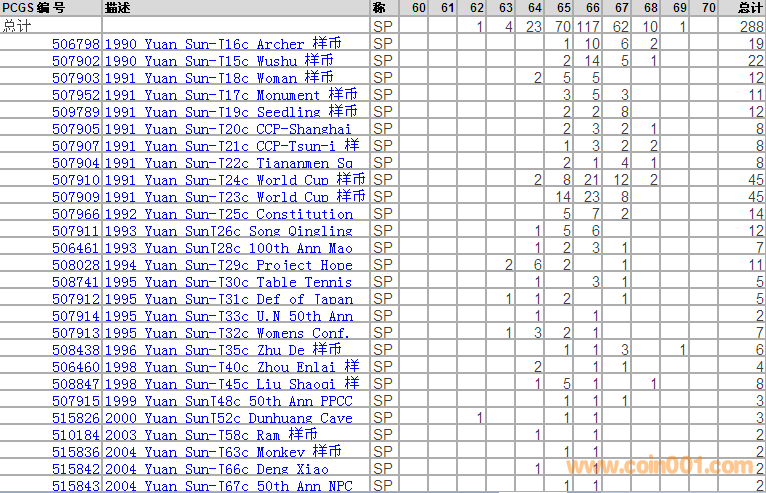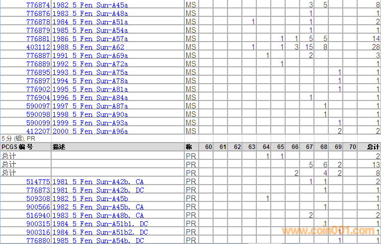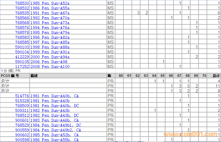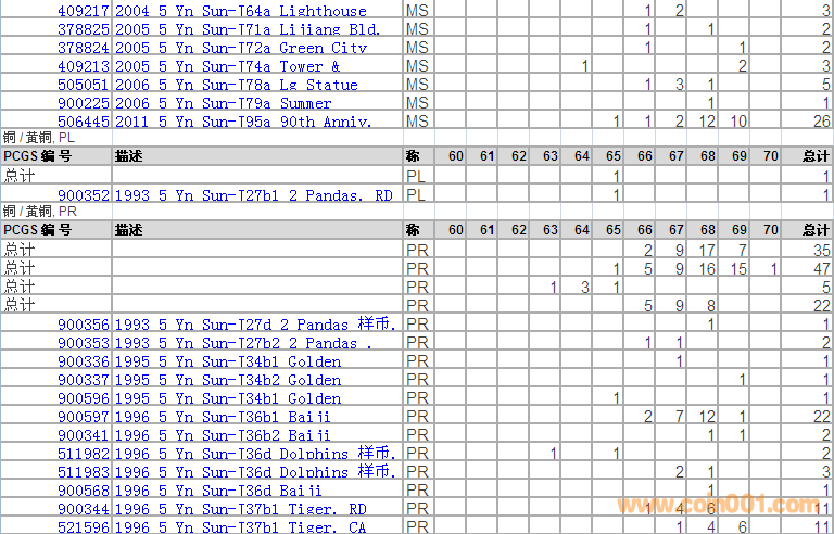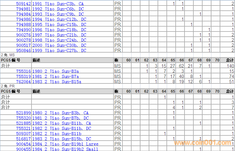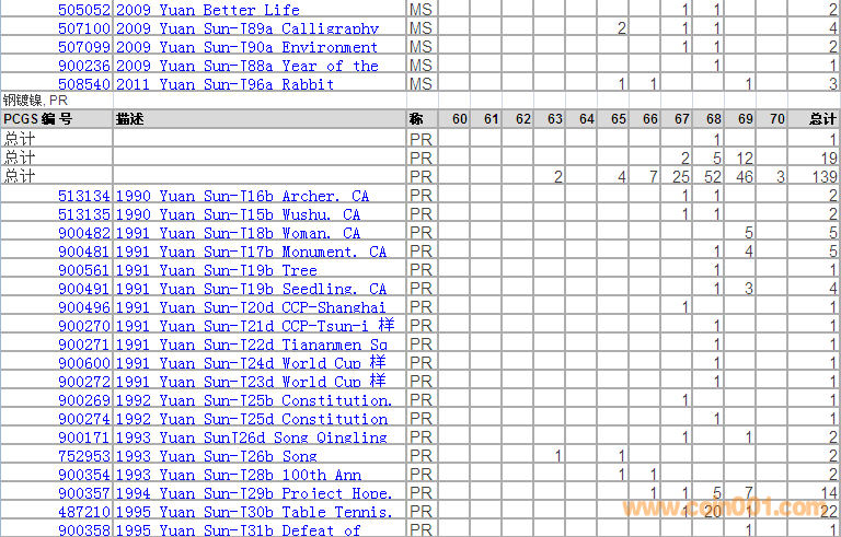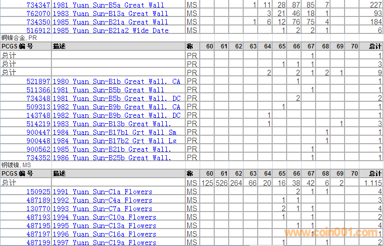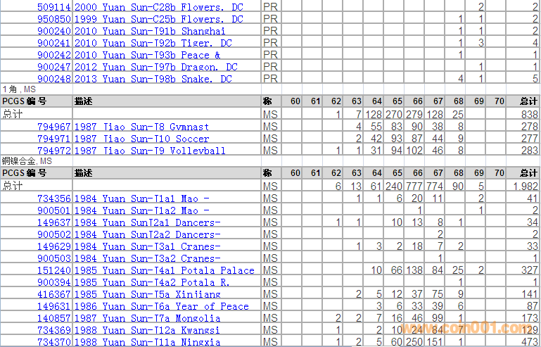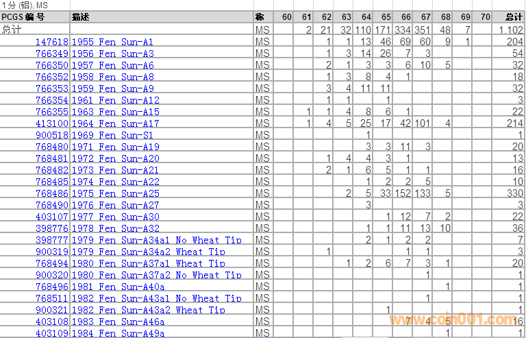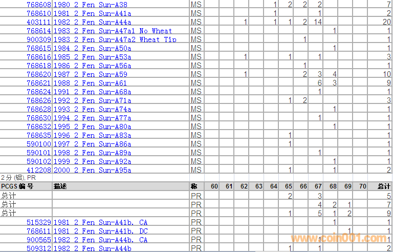 PCGS硬幣評級分數(shù)分布 ..