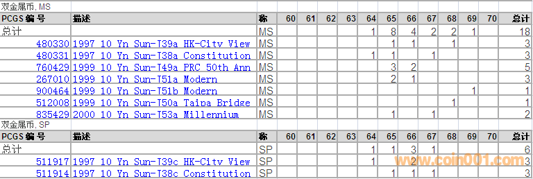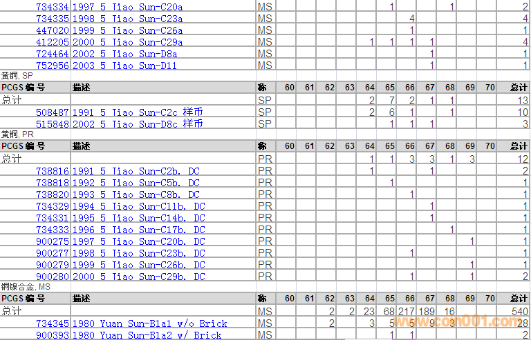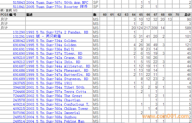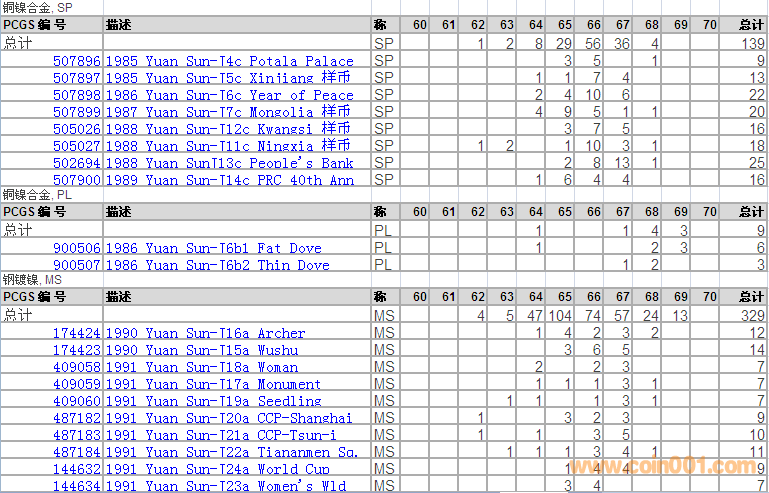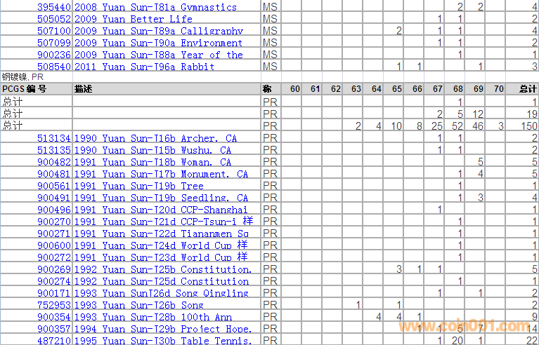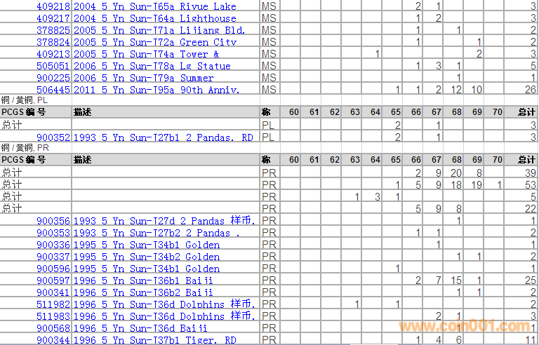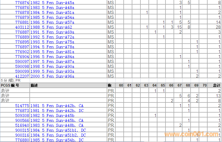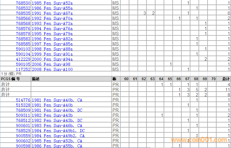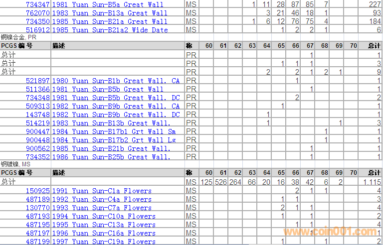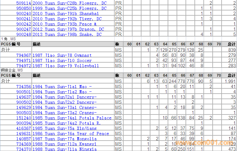 PCGS硬幣評級分?jǐn)?shù)分布 ..