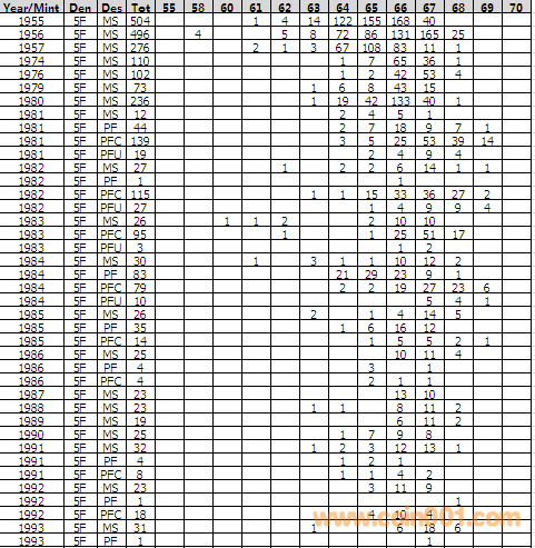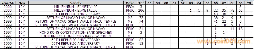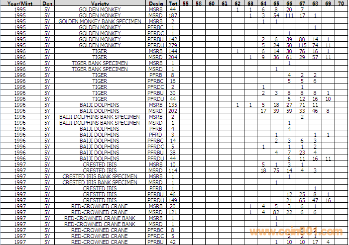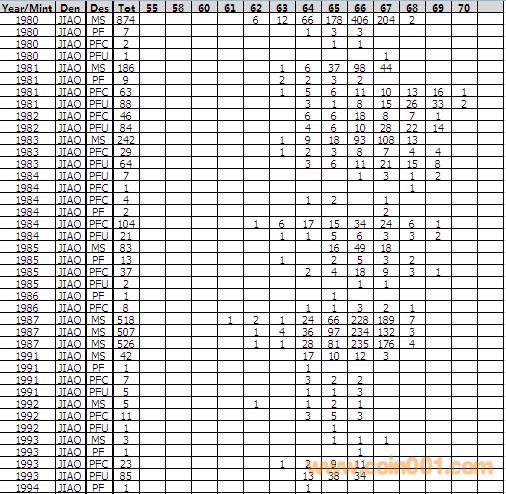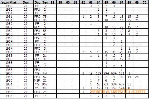 NGC硬幣評級分數(shù)分布 ..