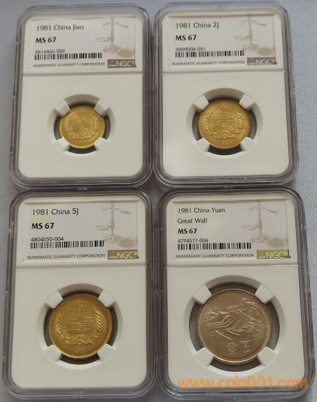 81年長(zhǎng)城幣一套4枚NGC MS66--950   MS67-1250