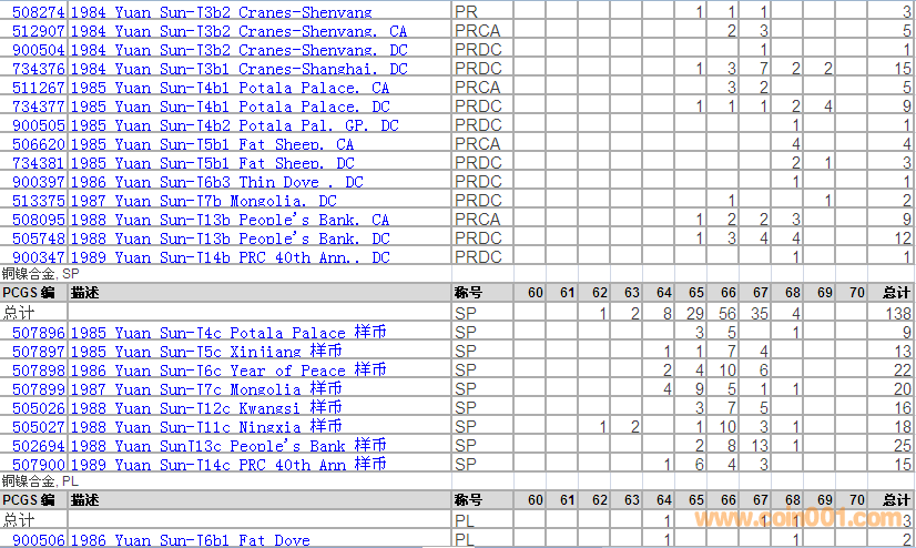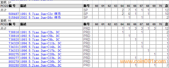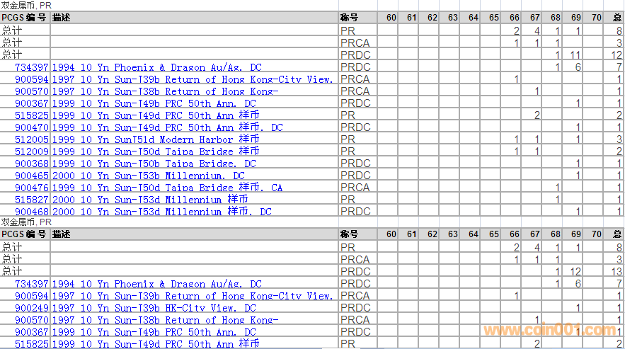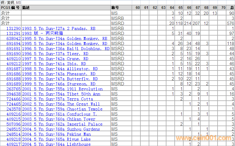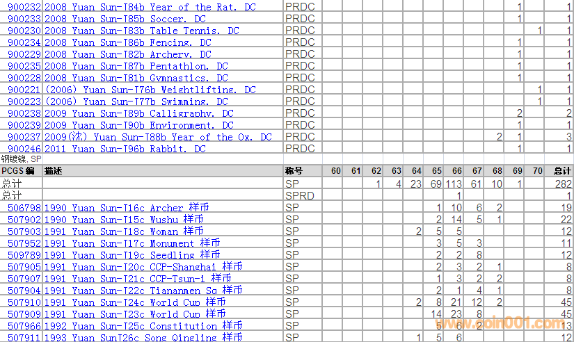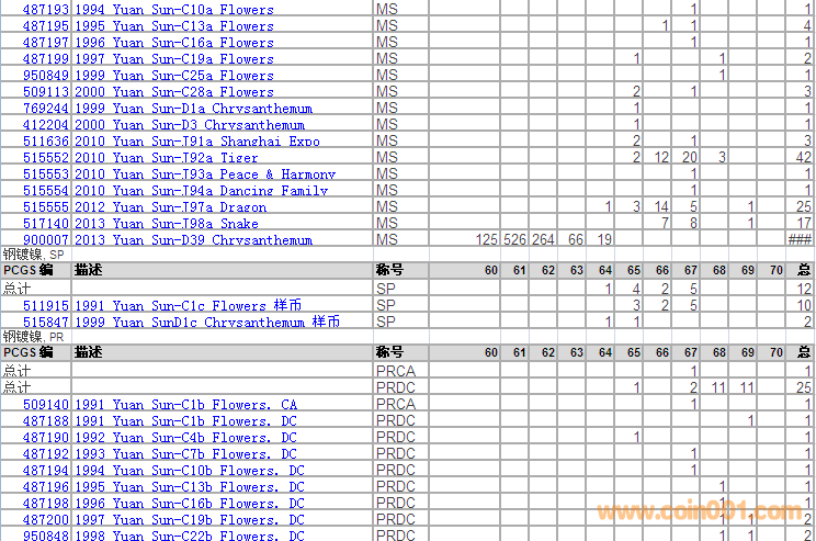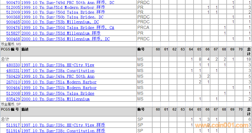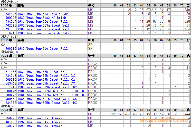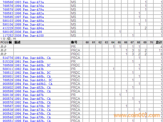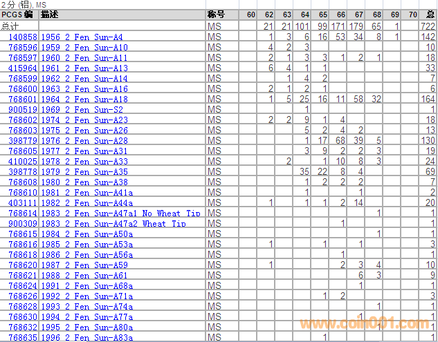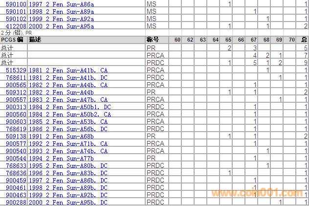 PCGS硬幣評級分?jǐn)?shù)分布 ..