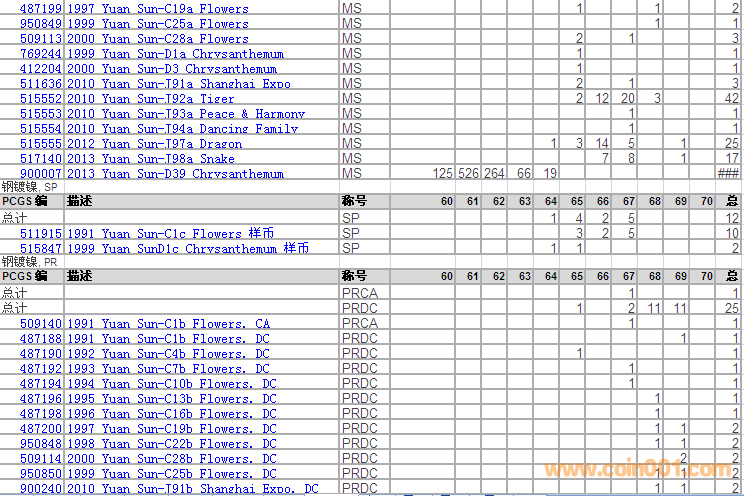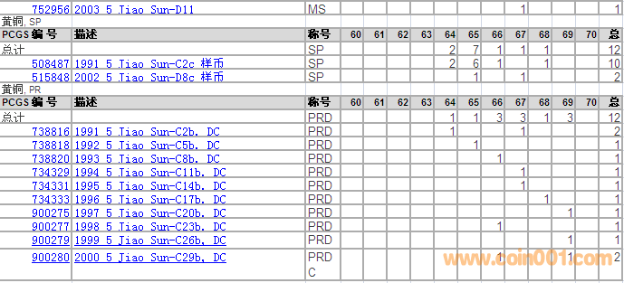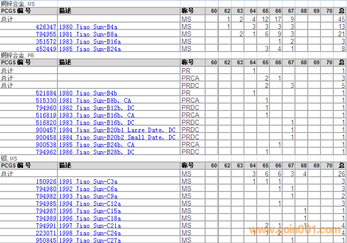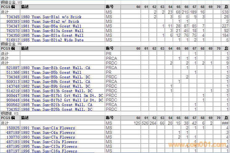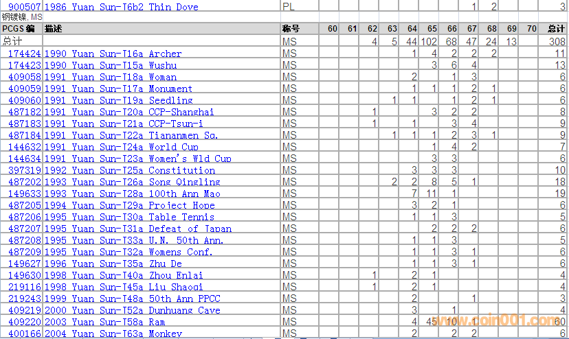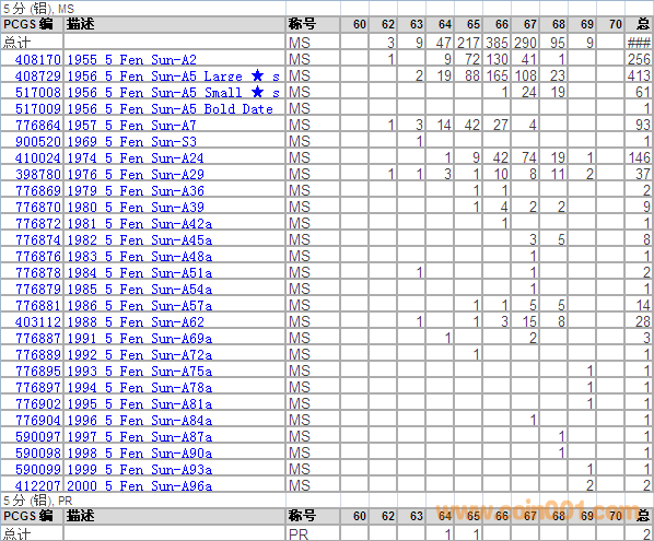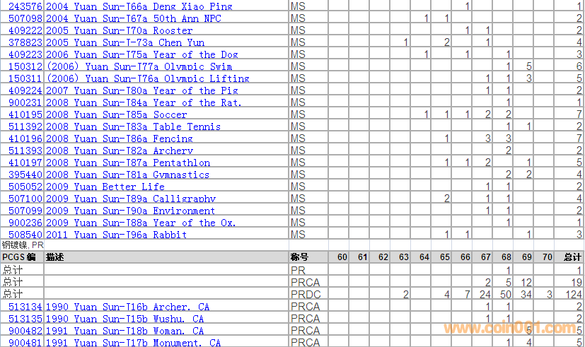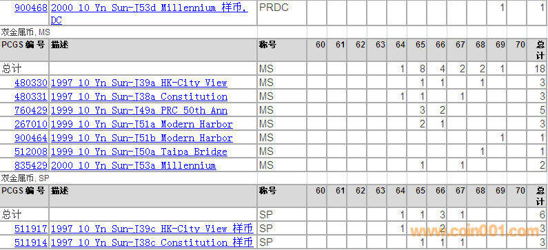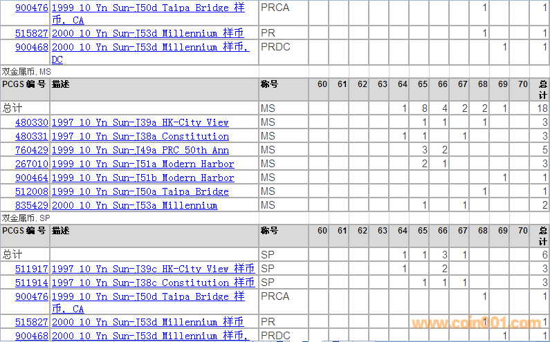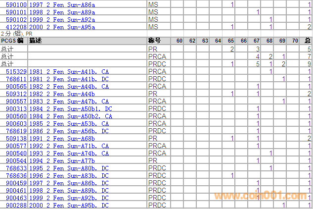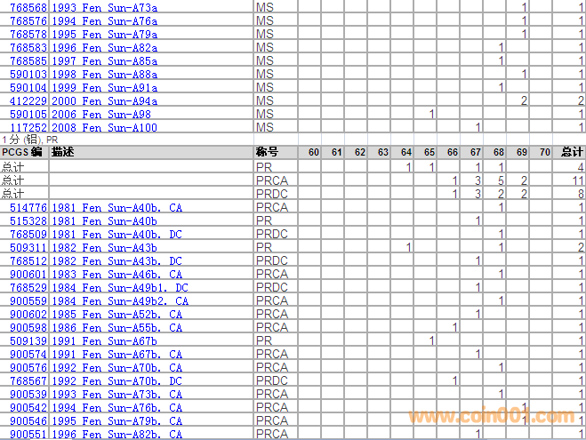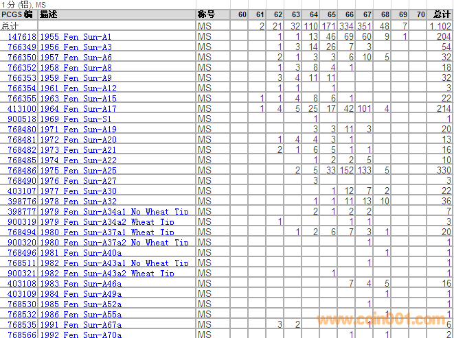PCGS硬幣評(píng)級(jí)分?jǐn)?shù)分布 ..