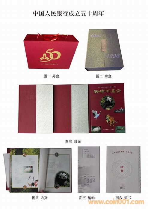 3、該書是建國后唯一一本經(jīng)人行授權(quán)裝幀貨幣實(shí)物的書籍,實(shí)物鑒賞冊內(nèi)裝幀有97年精制彩色熊貓銀幣、98年1/2oz本色熊貓銀幣各一枚;流通硬*幣:華南虎、白鰭豚、朱鹮、丹頂鶴、香港回歸(一套兩枚);