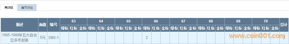 11M正式開展PCGS多幣封裝再評級業(yè)務PCGS多幣封裝再評級業(yè)務即日起正式啟動,PCGS多幣封裝將采用綜合評分的方式,對于符合再評級標準的PCGS多幣封裝將給予綠色、紅色和金色標簽。備:PCGS多幣封裝內(nèi)的錢幣必須是同分才能采用綜合評分的方式收費標準:收費價格主要參考2019年再評級收費標準*多幣封裝內(nèi)錢幣的數(shù)量舉例:5大自治區(qū) 5枚錢幣價值都在3000元以下,單枚再評級費用48元,多幣封裝收費48*5合計240元編號方式:多幣首字母DB,多幣封裝內(nèi)錢幣的數(shù)量,序號舉例: 5大自治區(qū) 編號:DB5-1截圖展示: