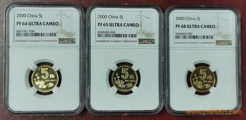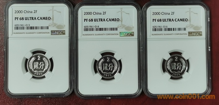 2000年1分NGCMS69- 195 2分NGC MS66-120 5分NGCMS69--210
