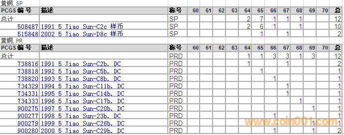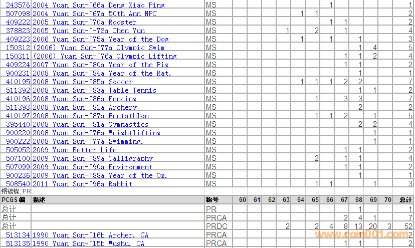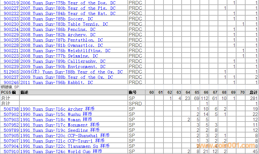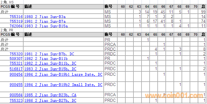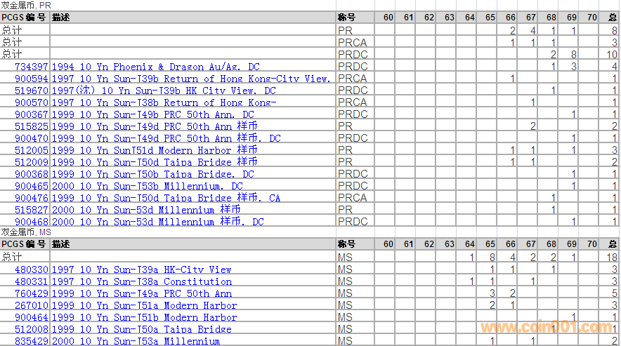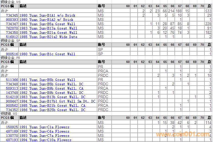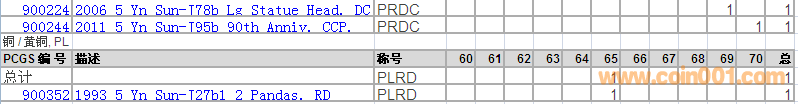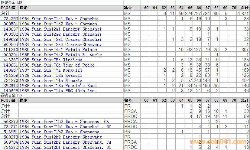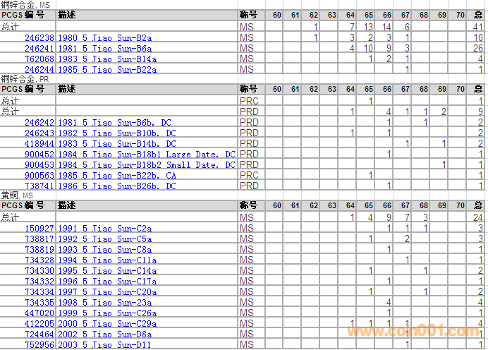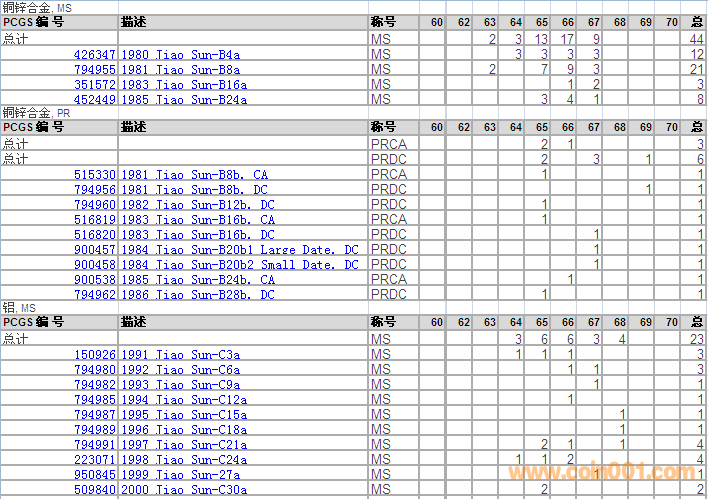 PCGS硬幣評級分?jǐn)?shù)分布 ..