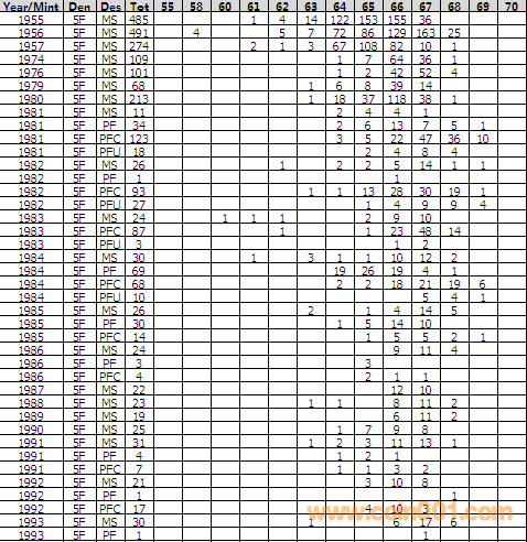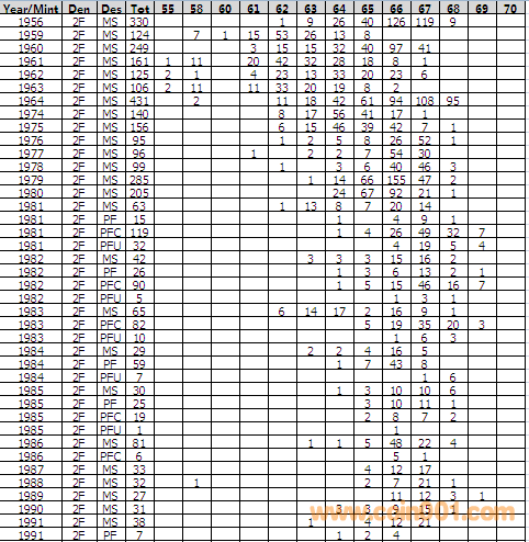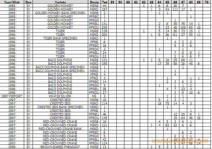 NGC硬幣評(píng)級(jí)分?jǐn)?shù)分布 ..