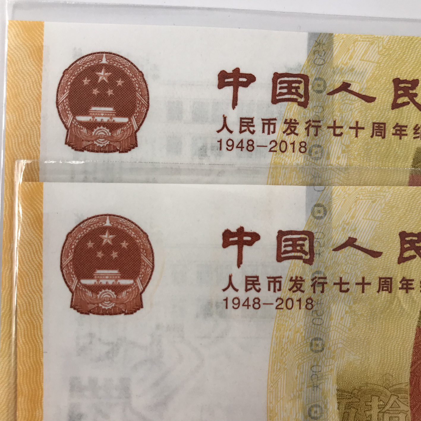 在最近的70周年鈔中,本人偶然發(fā)現(xiàn)有70周年鈔中的國(guó)徽處外有一條類似波光的橙色線條。這樣的橙色線,肉眼可見有別與一般的國(guó)徽,這樣的算不算新發(fā)現(xiàn)或者只是印刷問(wèn)題,這樣的橙色線我查看此張鈔相同號(hào)的前6位號(hào)段和相鄰的發(fā)現(xiàn)每張都有,大家討論討論,這個(gè)是個(gè)什么鬼??纯茨銈兪种械拟n,是否也有這樣的橙色。