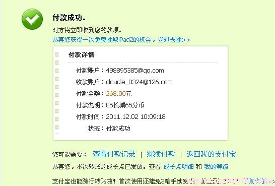 已打支付寶,發(fā)貨后告訴一下單號.謝謝