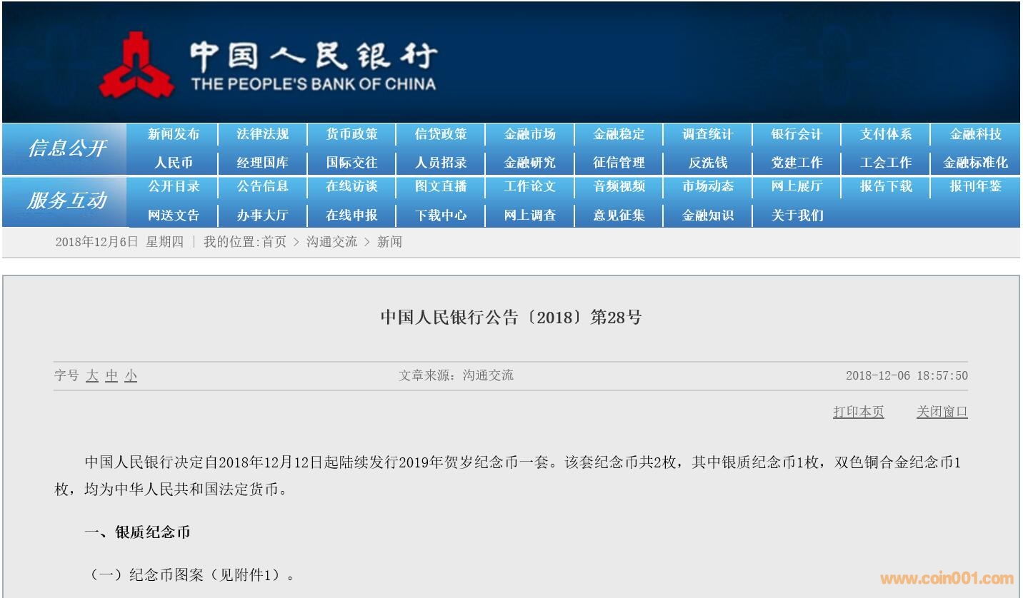 中國人民銀行決定自2018年12月12日起陸續(xù)發(fā)行2019年賀歲紀念幣一套。該套紀念幣共2枚,其中銀質(zhì)紀念幣1枚,雙色銅合金紀念幣1枚,均為中華人民共和國法定貨幣。