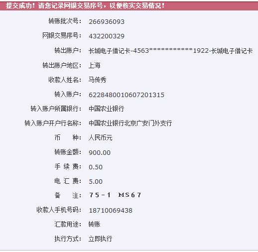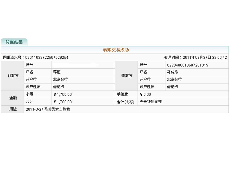 轉(zhuǎn)入賬號名稱: 馬傳秀