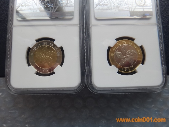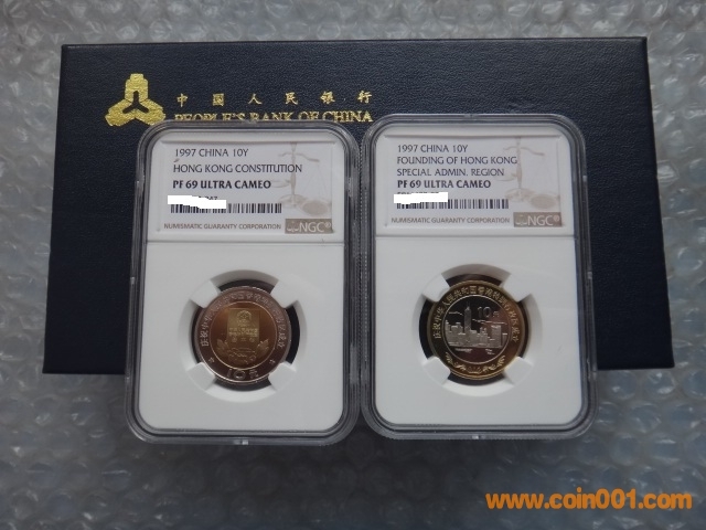 香港回歸精制幣蘭盒禮品裝 NGC69UC一對  6600元