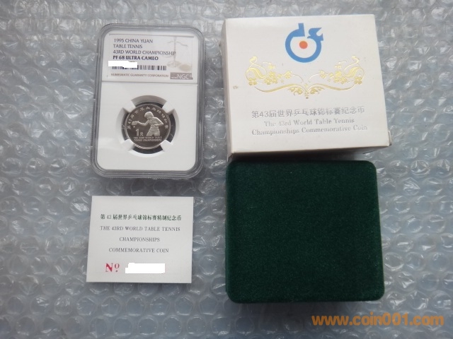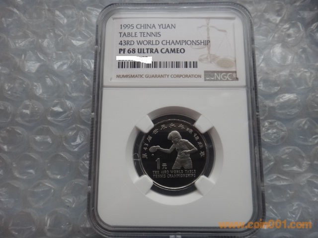 1995年精制世乒賽1枚 PF67UC  700元一枚  有3枚  帶盒證書
