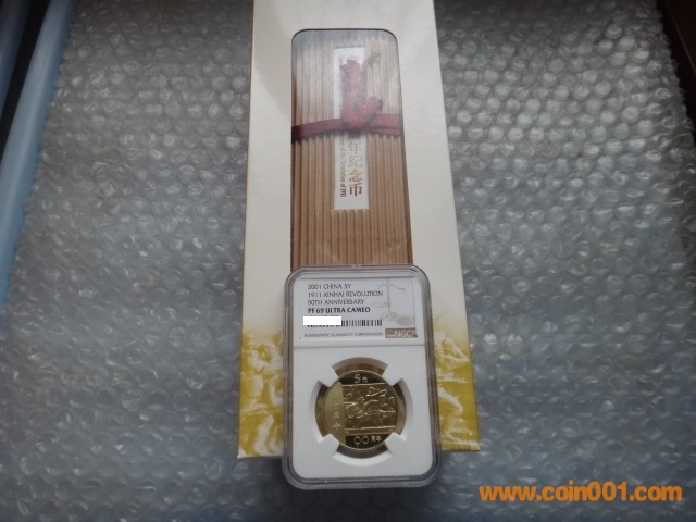 2001年辛亥革命精制幣NGC PF69UC(絕對未養(yǎng)護,漂亮金黃色包漿,帶卡冊證書)750元一枚 有4枚