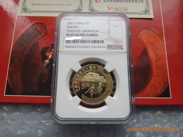 2001年新西藏精制幣 NGC PF69UC  色澤金黃,原始光澤。絕對未養(yǎng)護  600元一枚 帶卡冊證書 有7枚
