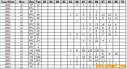 NGC硬幣評級分?jǐn)?shù)分布 ..