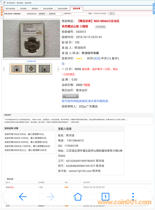 另一件值得欣喜的是在現(xiàn)代錢幣網(wǎng),老西藏普制幣小星版繼1500元、4500元價位成交后,昨天在評級幣交易區(qū)從發(fā)帖到成交僅2小時,以8880元再次成交??梢娙褜π掳鎰e的認(rèn)知度。成交的膽識在于泉友對新版別的研究探索,等所有人都認(rèn)知了這種版別,這個價位只能是一個零頭而已。就像以現(xiàn)在的老西藏普制幣小圖版來說,研究發(fā)源于現(xiàn)代錢幣網(wǎng),泉友受益于現(xiàn)代錢幣網(wǎng)。期初“小圖版(遠(yuǎn)山版)”在2000元左右的價位,到2016年上半年呢?在到2016年下半年呢?現(xiàn)在呢?在紀(jì)念幣行情不太景氣的今天,老西藏幣新版別能形成一個小的氣候絕對不是什么偶然的事件,是泉友對收藏的熱愛,不斷探索研究的結(jié)果。什么是錢幣文化,這就是錢幣文化!什么是價值,這就是價值!