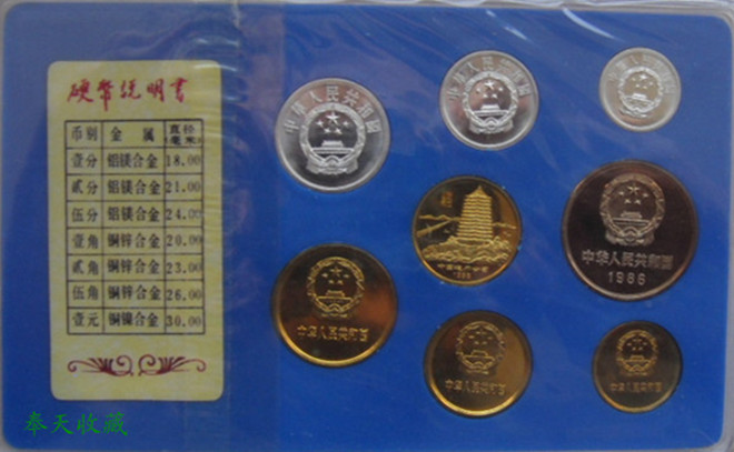 ?????????? 1986年8枚裝沈陽版白本套幣(圖20,冊子同圖17),沈陽造幣廠鑄造和裝幀,含有三枚86版號的平版分幣和四枚沈陽版長城套幣,以及沈幣廠鑄造黃銅精制虎章一枚,發(fā)行量660套。三枚平版分幣均大量鑄造進(jìn)入流通(工藝是精制);四枚沈陽版86長城幣,均未正式發(fā)行進(jìn)入流通,為收藏第二套流通硬幣的最大筋幣,收藏價值很高,由于其鑄造量是共和國流通幣里發(fā)行量最少的,僅有區(qū)區(qū)幾百套,在流通硬幣收藏大系中實(shí)屬珍罕,被譽(yù)為“新中國硬幣之王”當(dāng)之無愧?,F(xiàn)在86長城套幣價格已經(jīng)來到15萬元,未來無論86長城套幣價格漲到什么程度都不足為奇,不出幾年,86長城套幣只會在珍品拍賣會上才可偶見芳容。