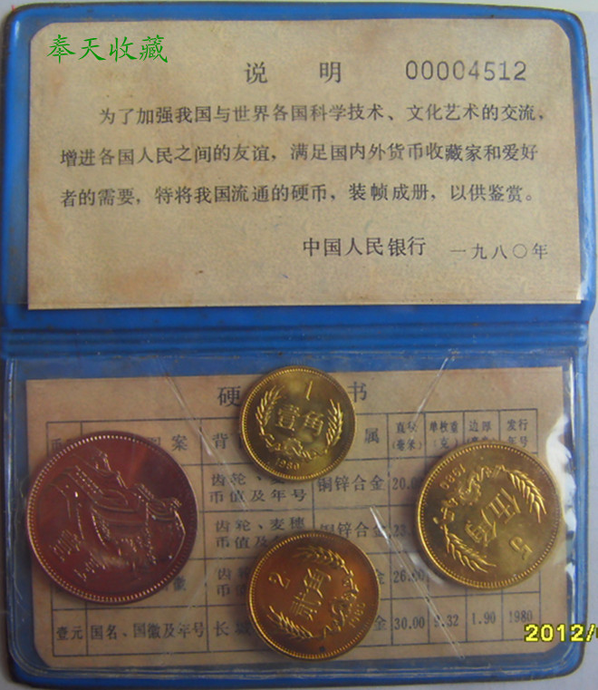 ????1980年人行版四枚裝小黑本套幣(圖1、圖2), 80年四枚套小黑本套幣是長城幣樣幣,在孫克勤先生的文章里有詳盡論述,其樣幣地位是無庸置疑的,這也是迄今為止發(fā)現(xiàn)的共和國最早的一套流通硬幣樣幣。筆者曾因?yàn)樽⒁獾狡湔f明書中寫明供世界錢幣愛好者收藏交流之類的表述,所以當(dāng)時對80小黑本是樣幣的觀點(diǎn)有些疑問,便到山東省人行貨幣金銀處落實(shí),證實(shí)判斷是正確的。省人行當(dāng)時是按照人行總行的指令把小黑本作為樣幣發(fā)放到各地方支行的。目前大多數(shù)收回,20本一捆,很多捆封存在金庫里。后來筆者拆解了幾套小黑本,對幣的品相進(jìn)行對比研究,比較了81--86年的精制幣,和80-85年的普制卷拆幣,結(jié)果發(fā)現(xiàn),小黑本中的長城幣和精制幣很接近,尤其是與85、86的精制幣很貼近,即有很好的拋光鏡面,但噴砂多數(shù)卻不太明顯。而與卷拆普制幣的品相卻相差太遠(yuǎn)。據(jù)此,筆者判斷,80年小黑本樣幣在工藝上屬于精制幣,限于當(dāng)時流通幣剛開始鑄造精制幣,工藝不算成熟,幣品沒有后來的精制幣好,說80小黑本長城幣是流通幣精制幣的試驗(yàn)幣也未嘗不可。那么,80年小黑本就有了中國流通硬幣的第一套樣幣,長城幣樣幣,精制幣或精制流通幣試驗(yàn)幣的諸多地位和元素。現(xiàn)在筆者手中有一本編號019236的小黑本樣幣,是目前國內(nèi)發(fā)現(xiàn)的編號最大的小黑本,加上孫先生對小黑本的發(fā)行量推斷是18000余套,看來小黑本發(fā)行20000套幾成定論。鑒于其為樣幣,目前大多數(shù)封存在人行庫中,實(shí)際上進(jìn)入收藏領(lǐng)域的還是為數(shù)很少。故此,80小黑本集諸多錢幣史重要地位于一體,又面世量極為稀少,可謂收藏中的上品。