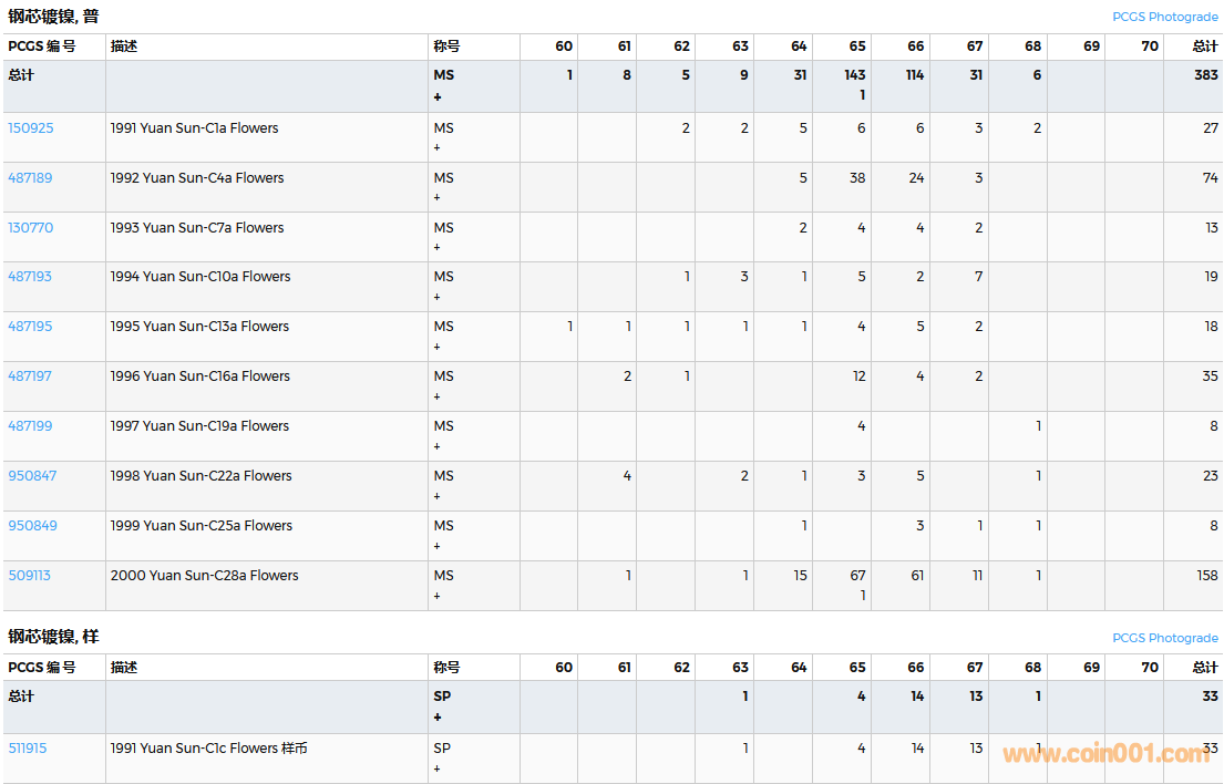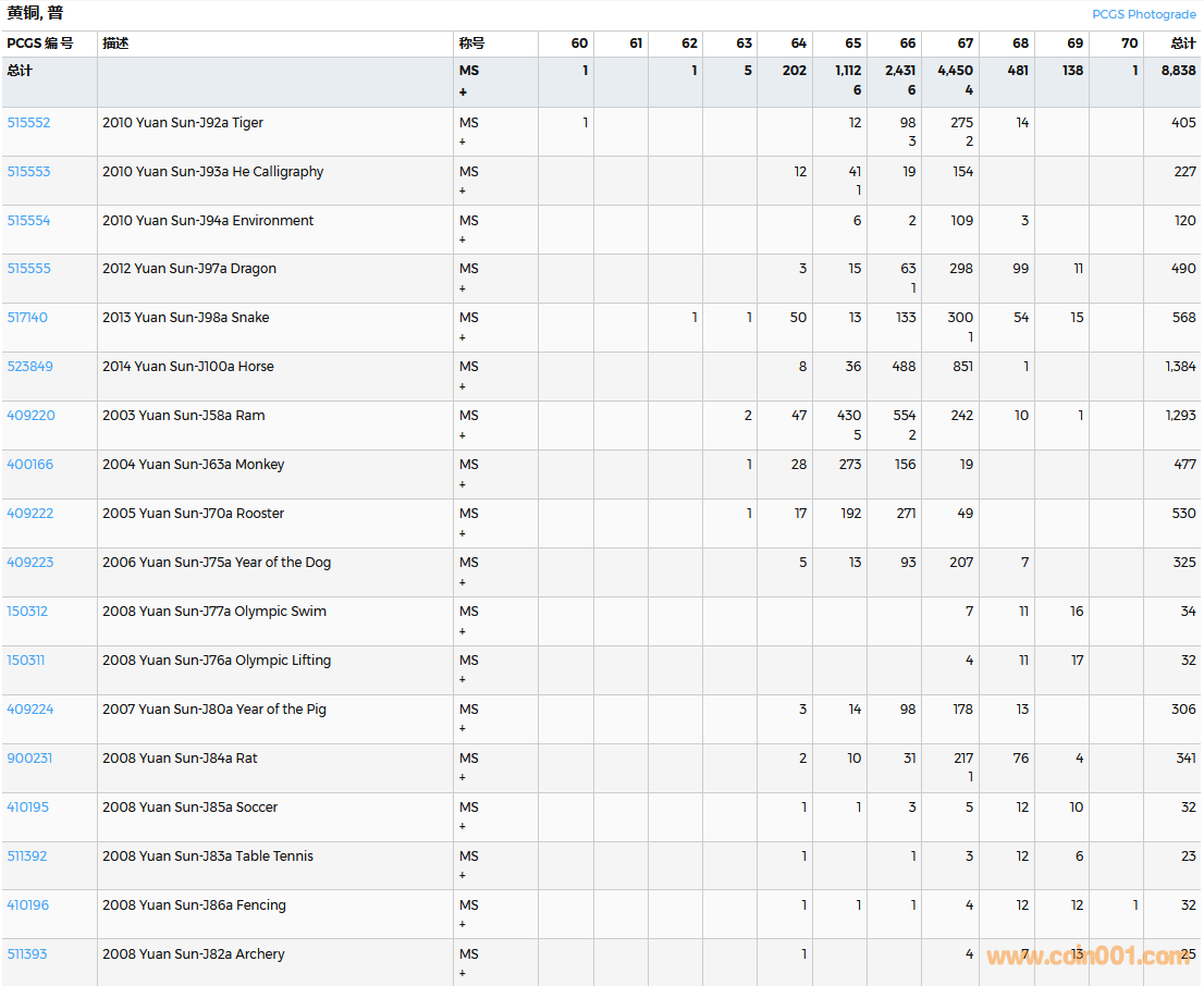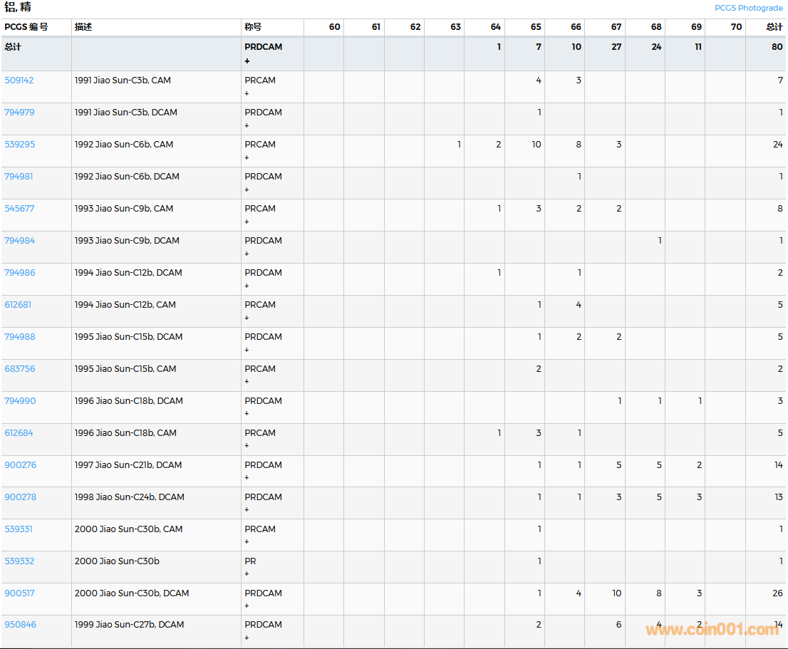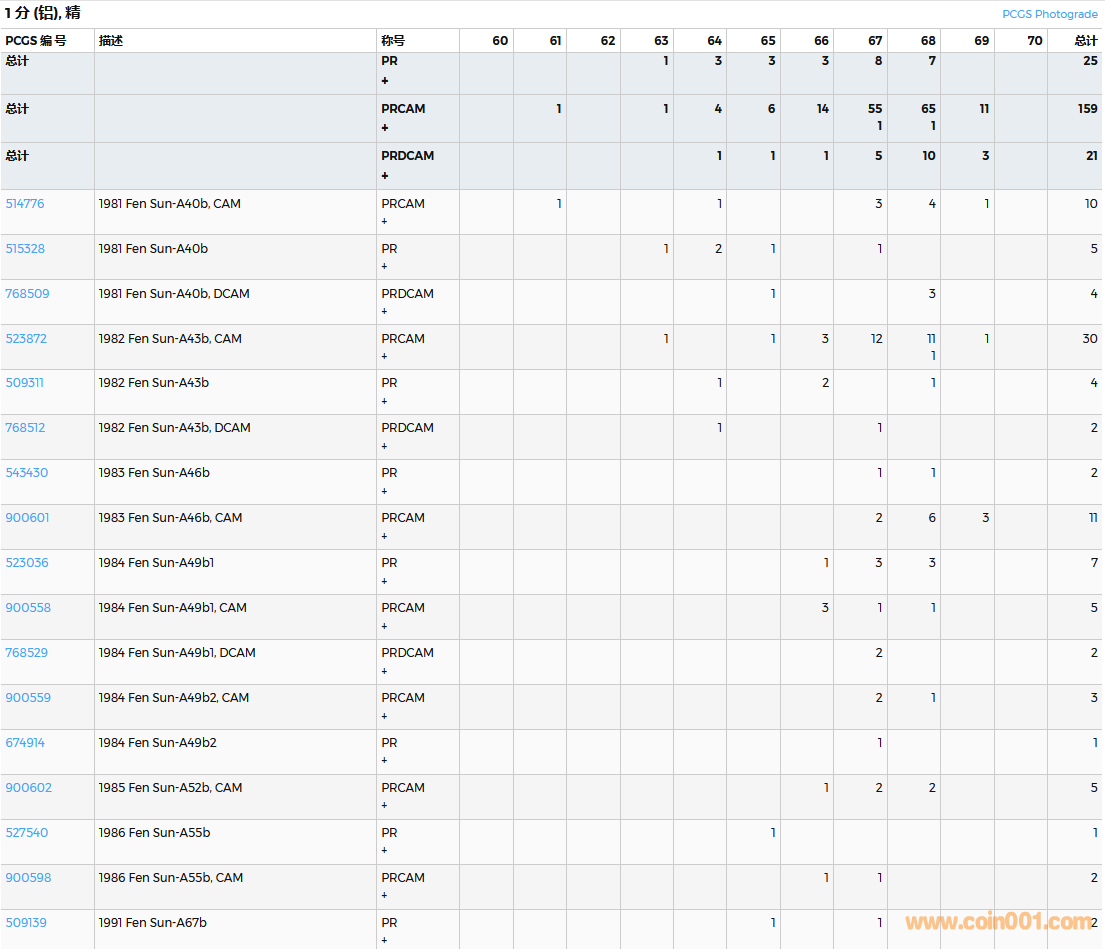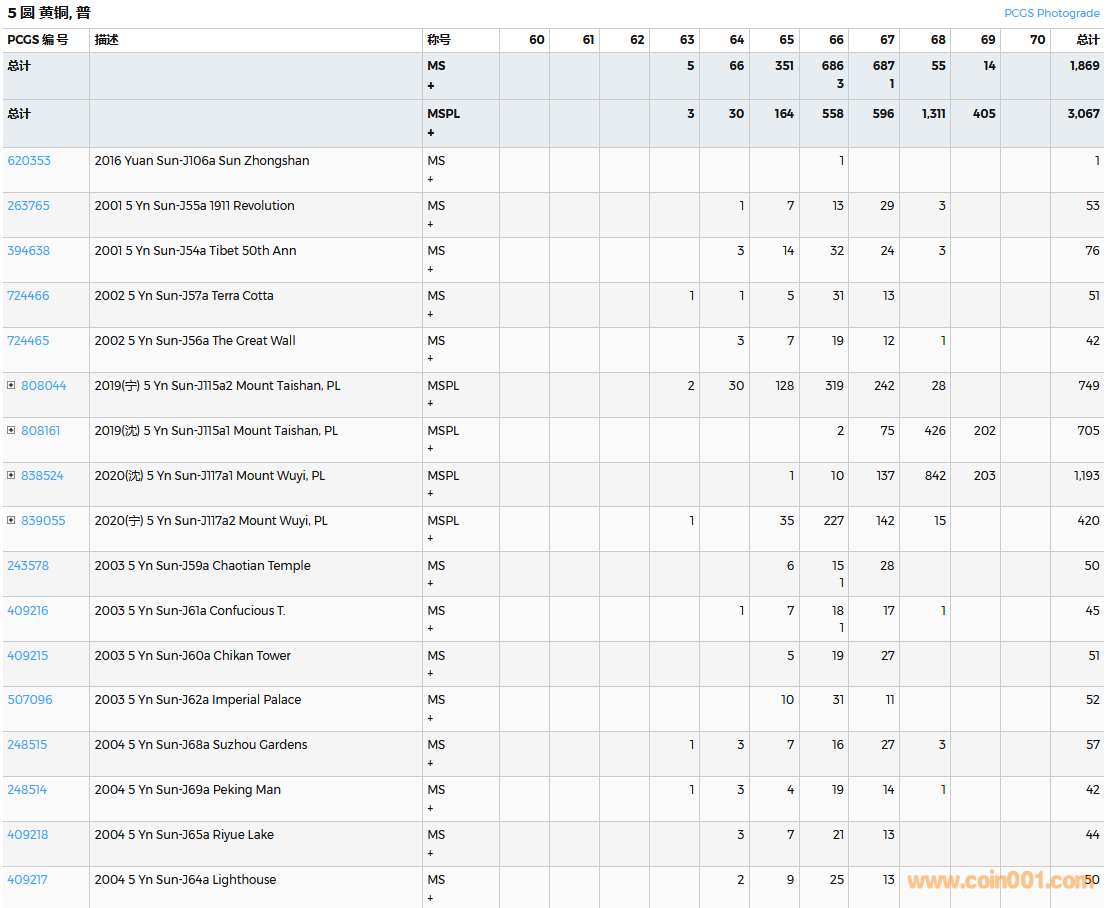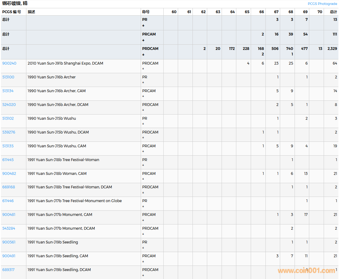 PCGS硬幣評(píng)級(jí)數(shù)量報(bào)告( ..