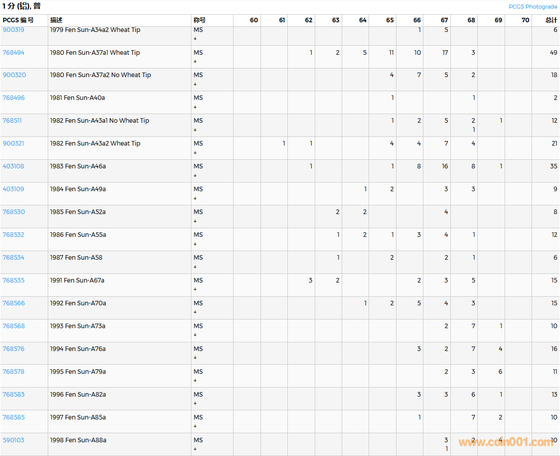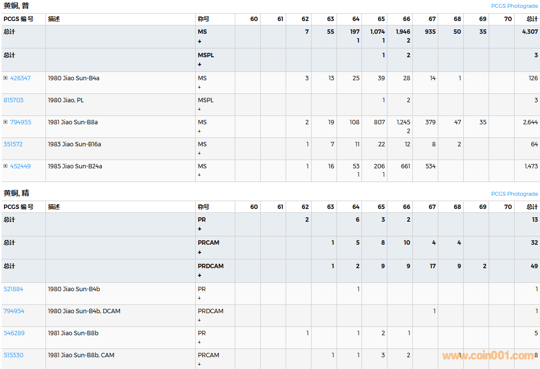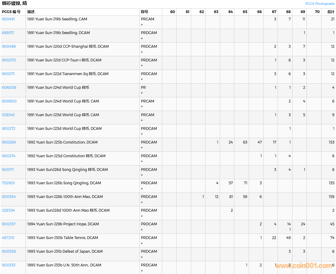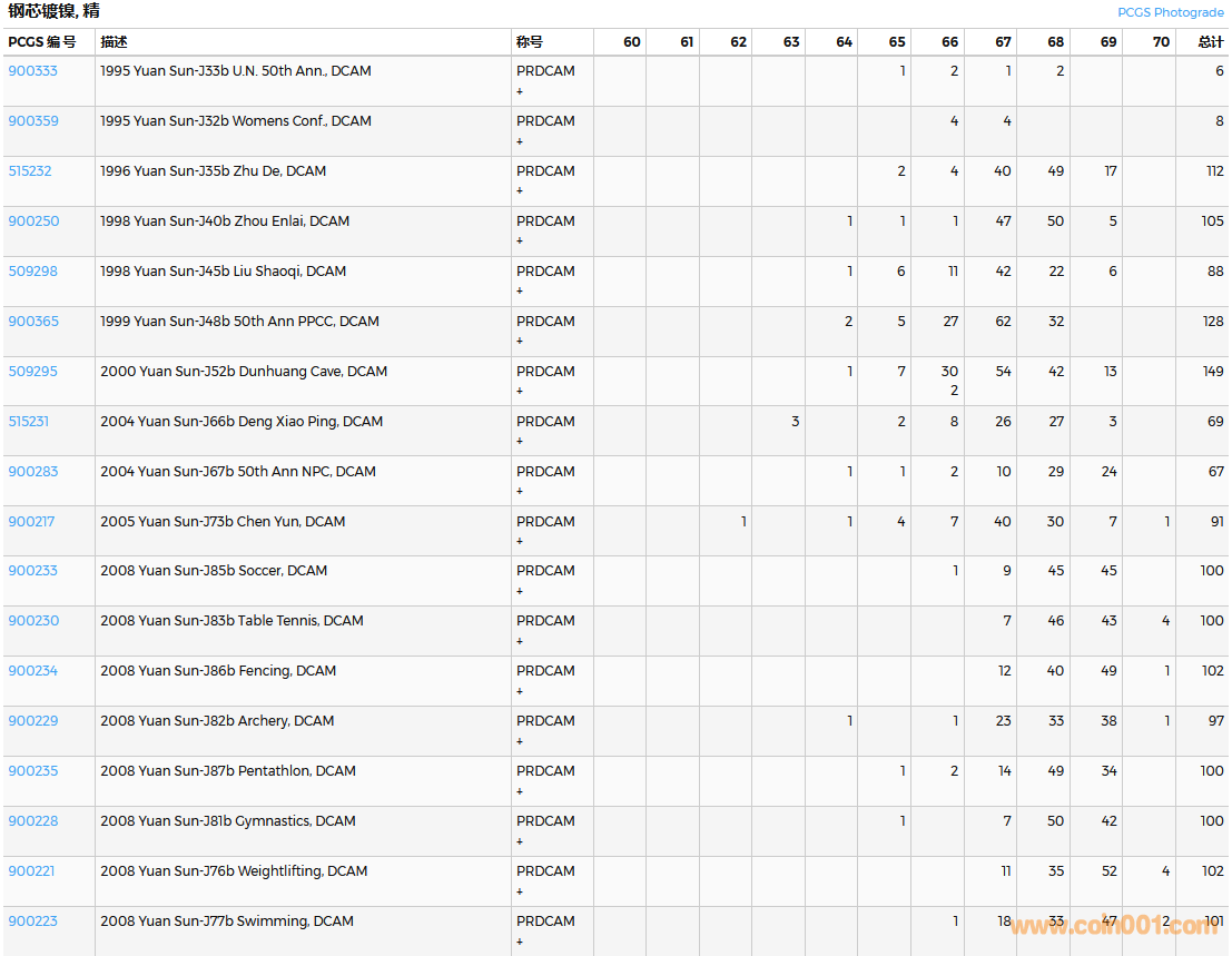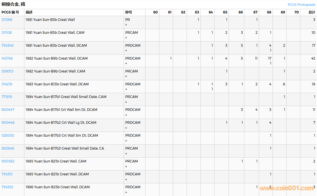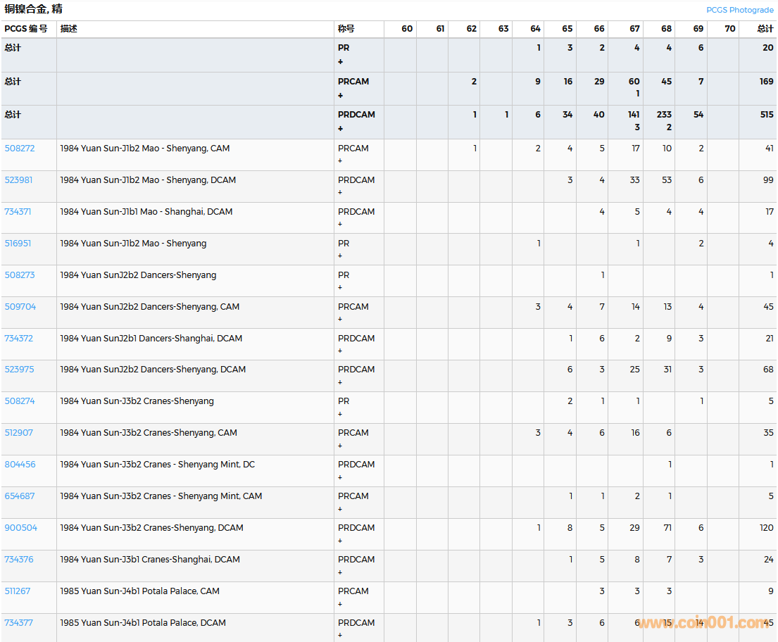 PCGS硬幣評(píng)級(jí)數(shù)量報(bào)告( ..