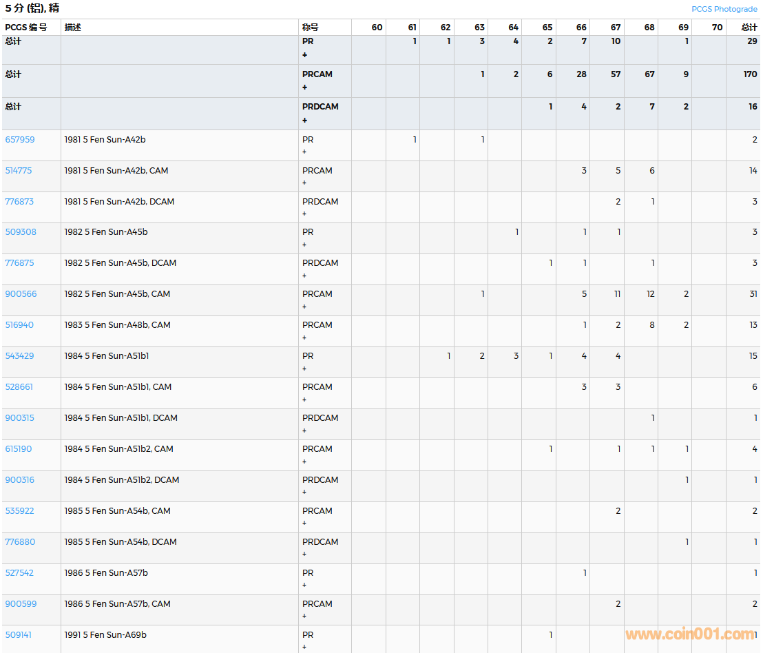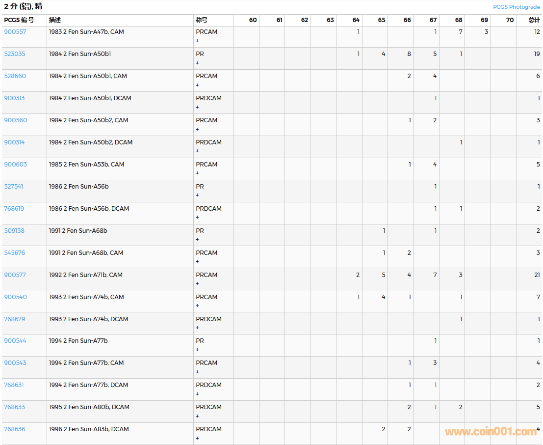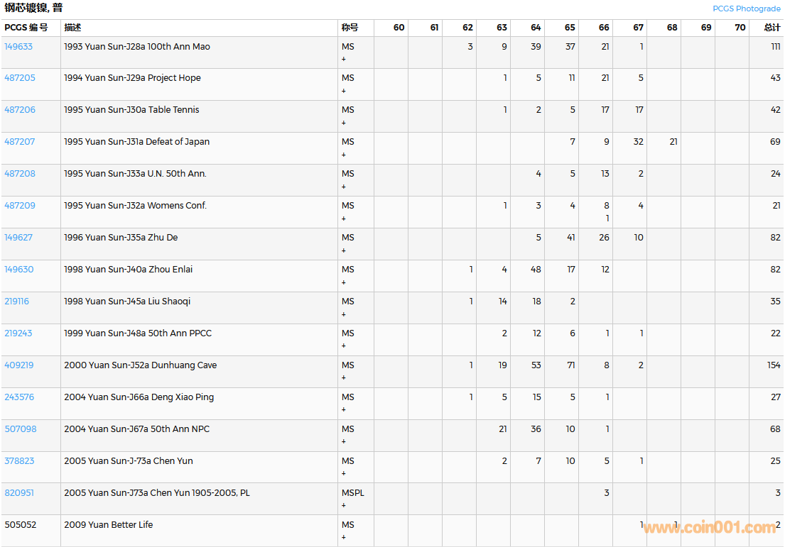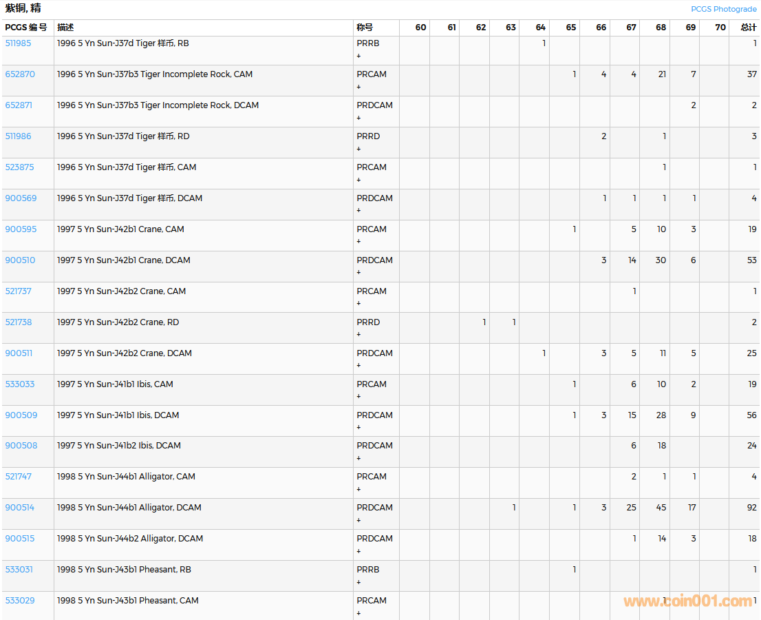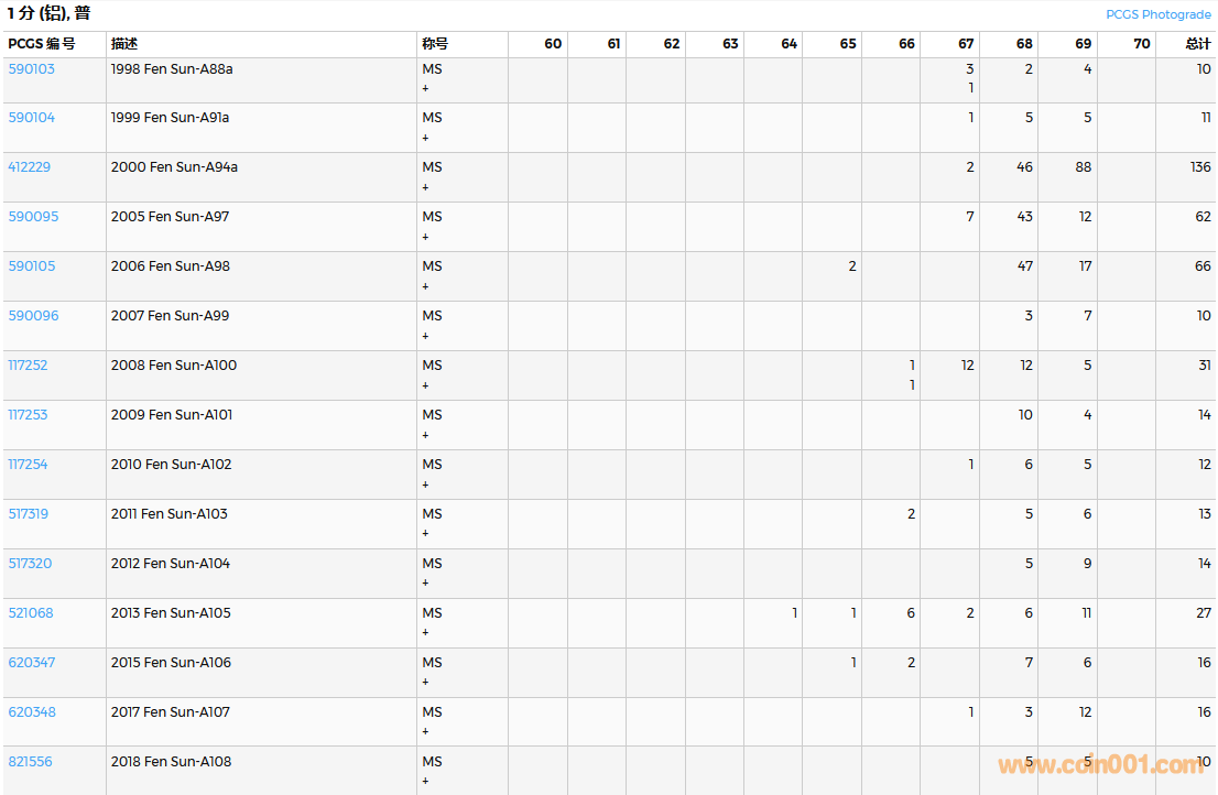 PCGS硬幣評(píng)級(jí)數(shù)量報(bào)告( ..