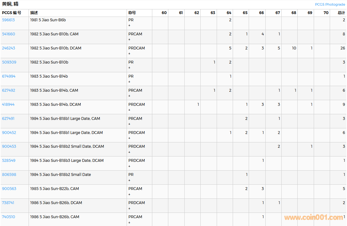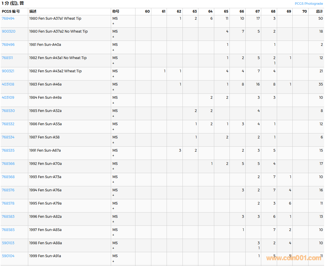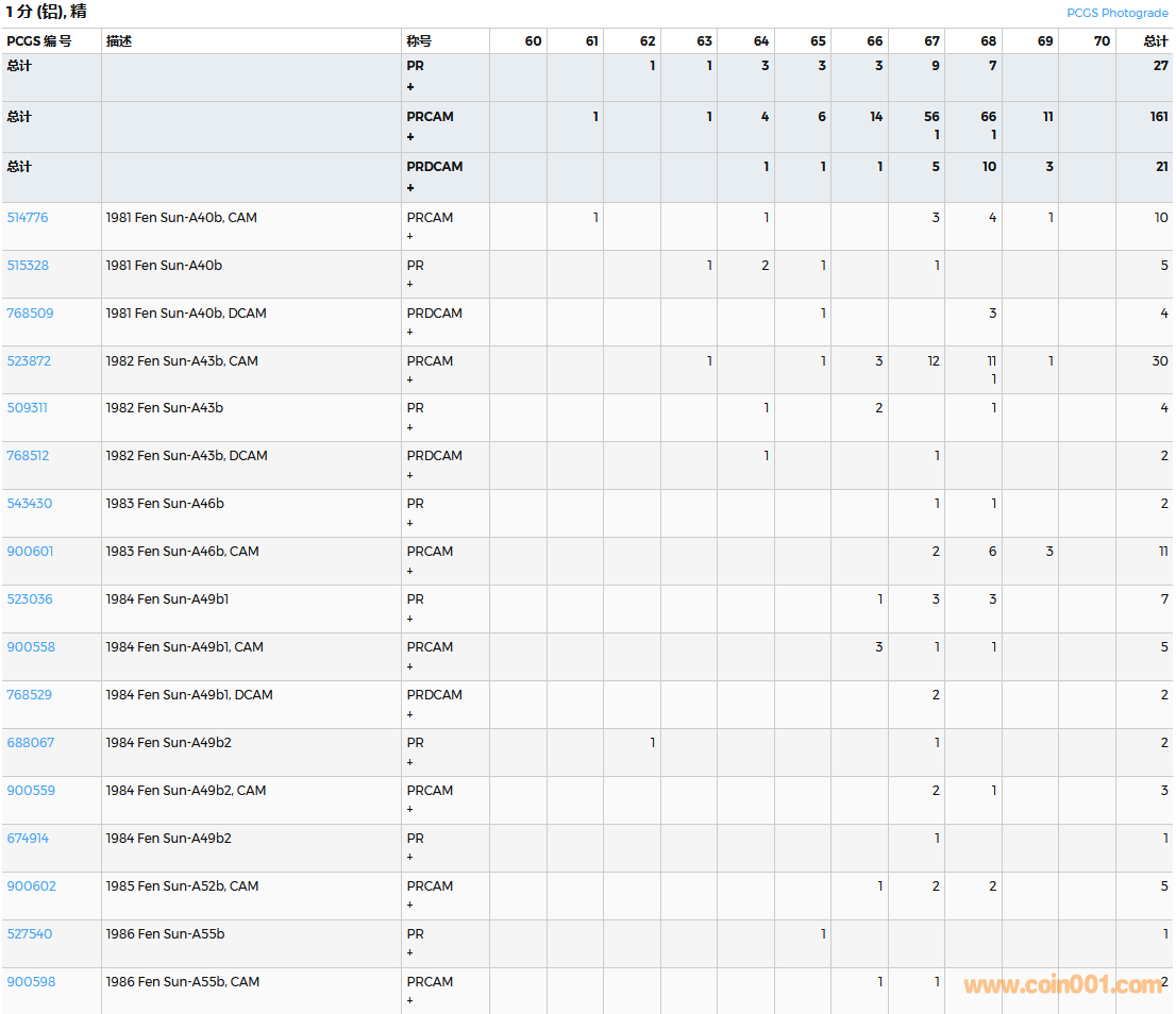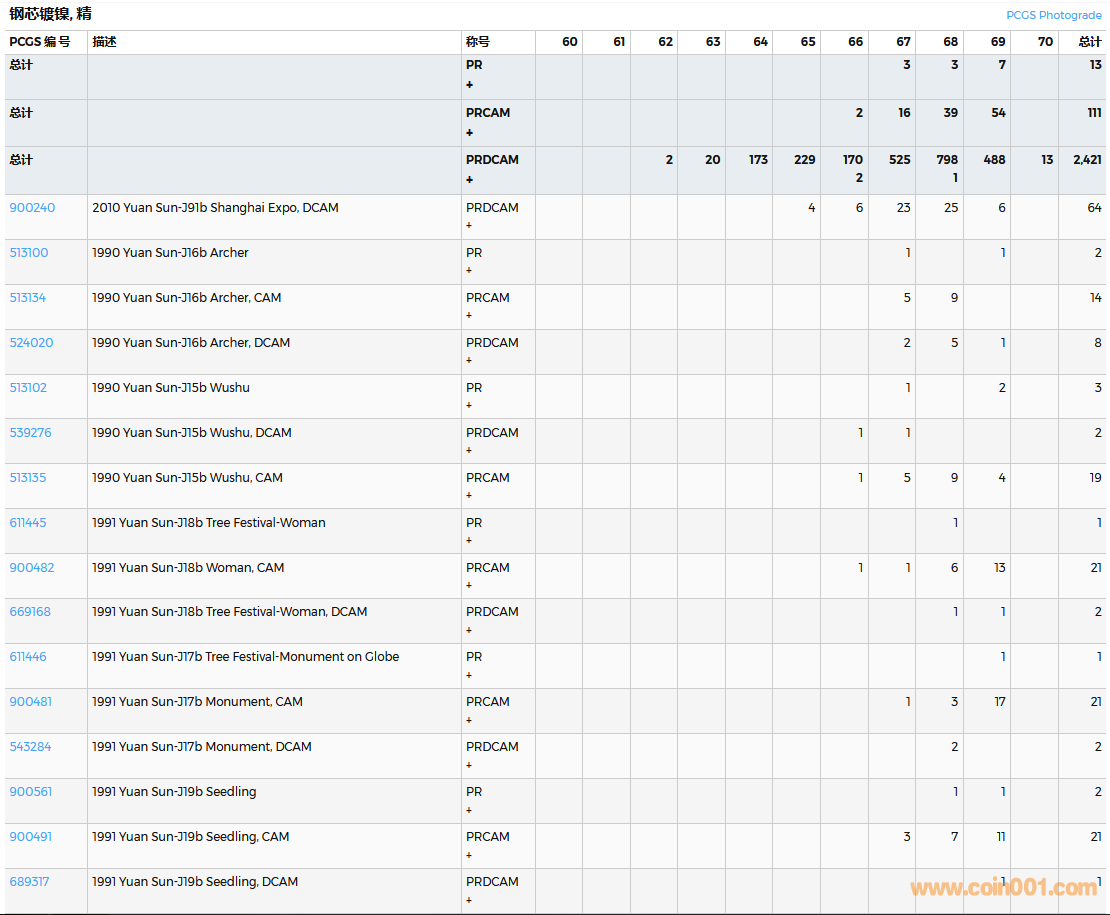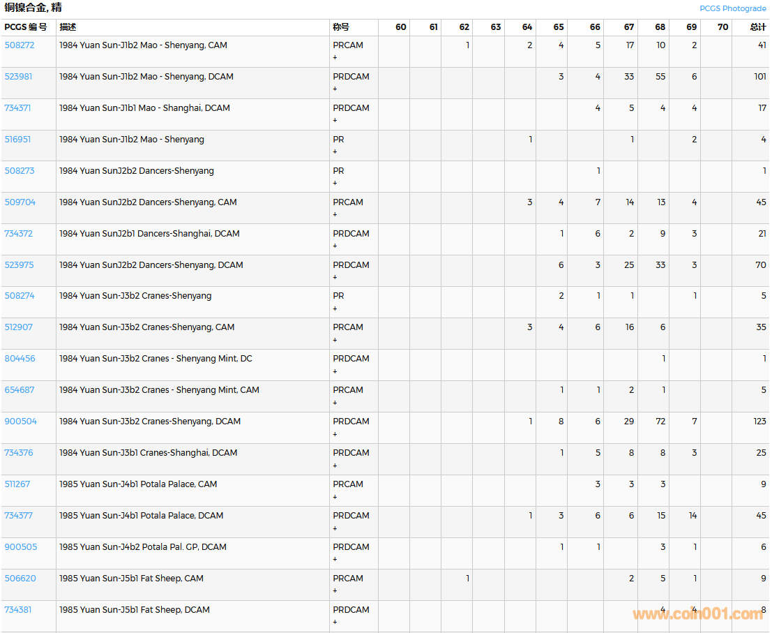PCGS硬幣評(píng)級(jí)數(shù)量報(bào)告( ..