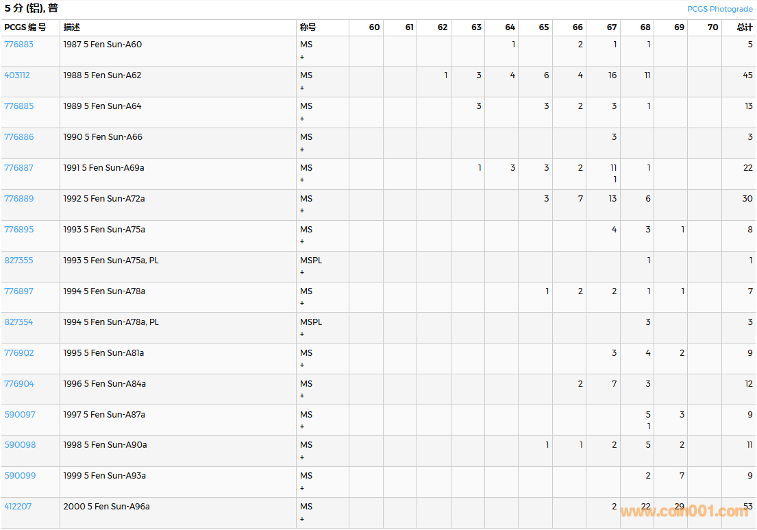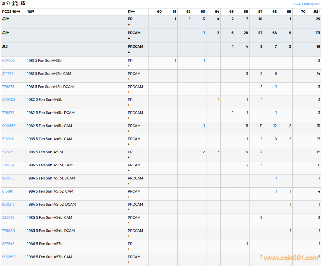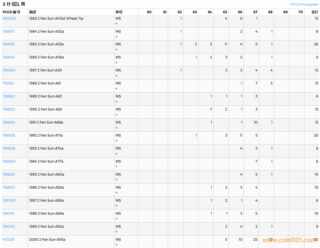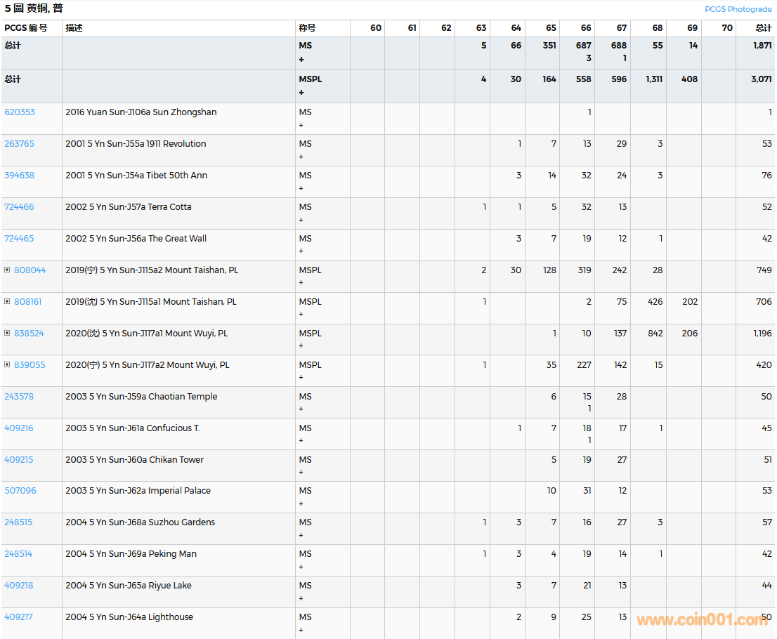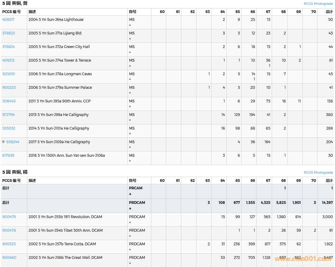 PCGS硬幣評(píng)級(jí)數(shù)量報(bào)告( ..