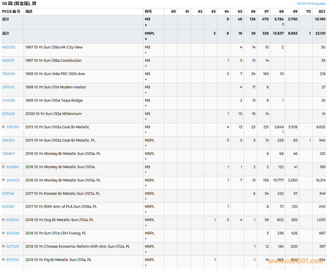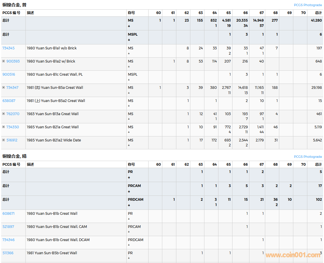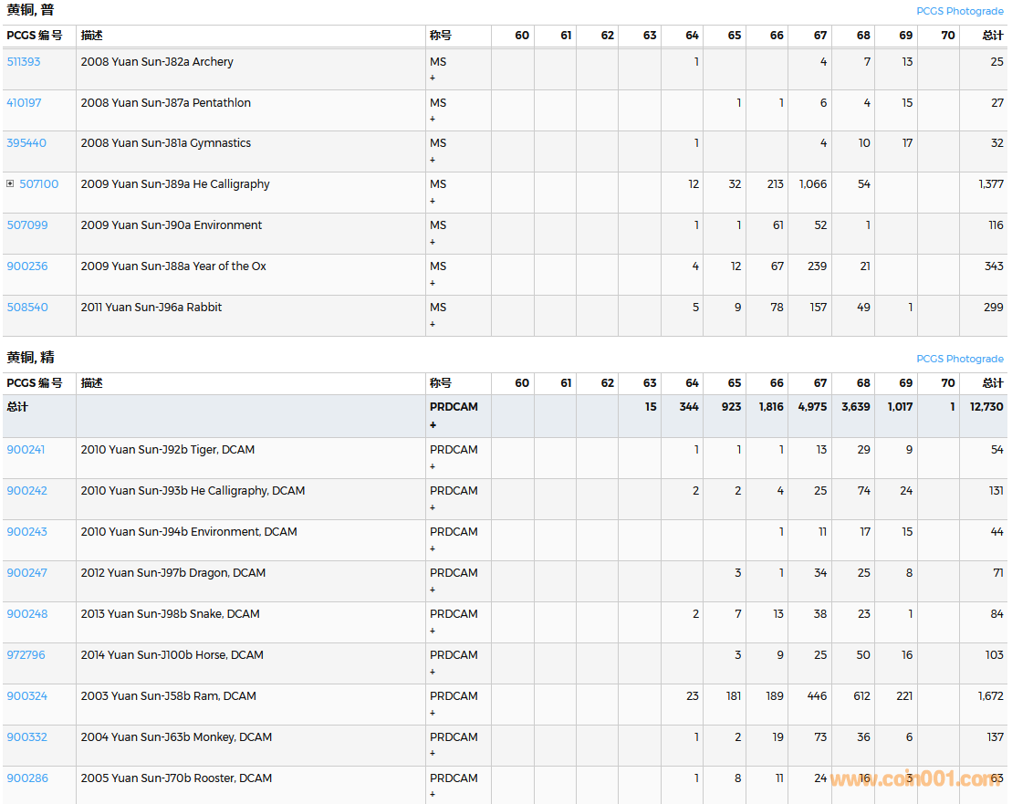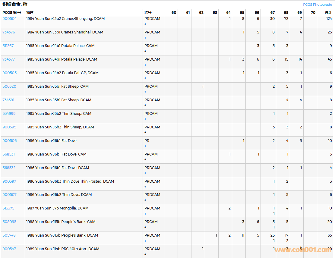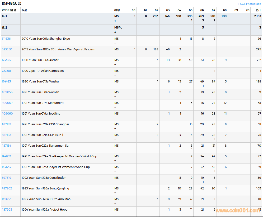 PCGS硬幣評(píng)級(jí)數(shù)量報(bào)告( ..