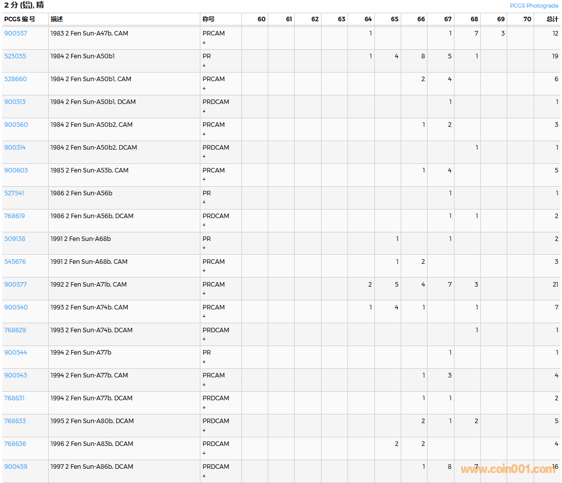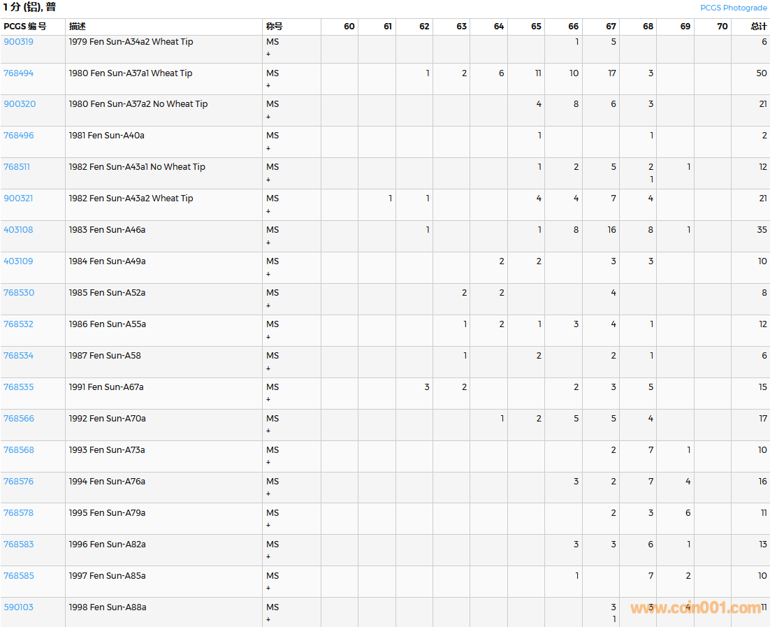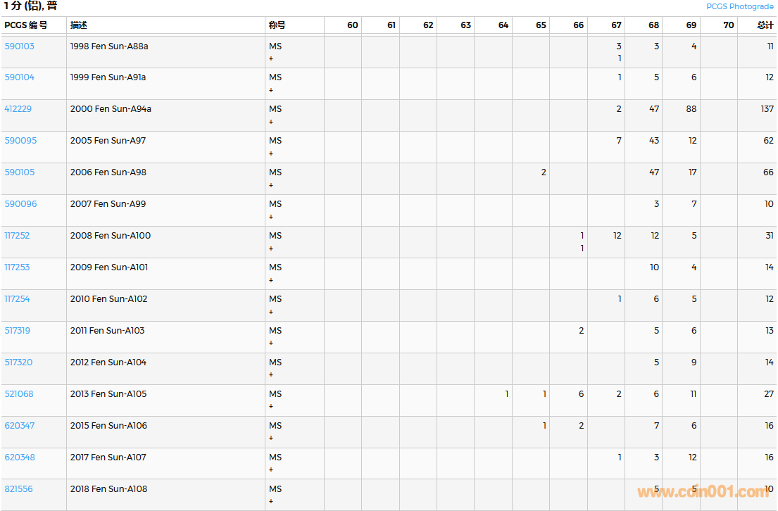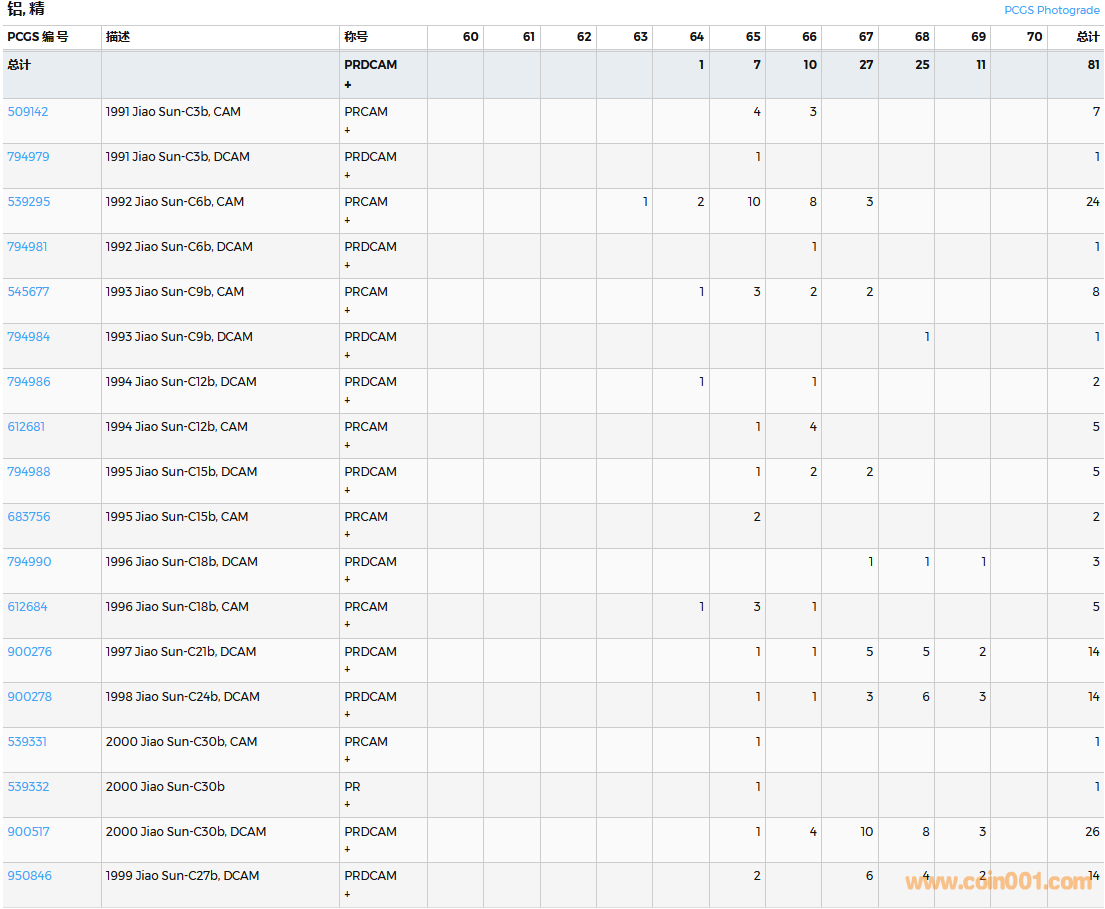 PCGS硬幣評(píng)級(jí)數(shù)量報(bào)告( ..