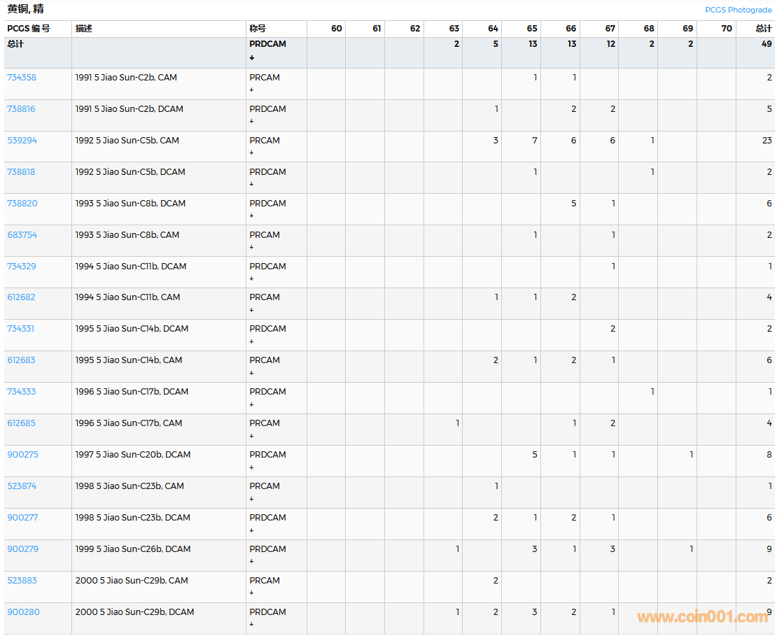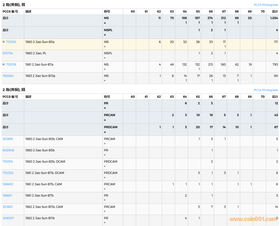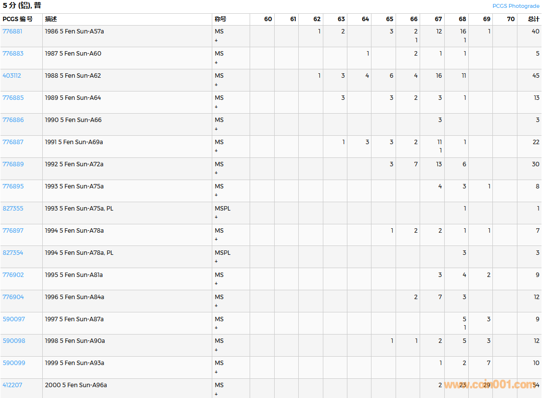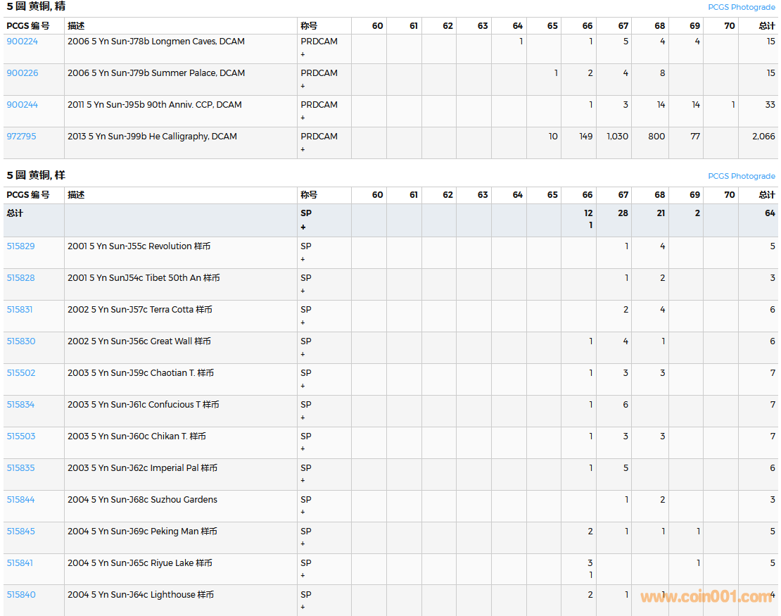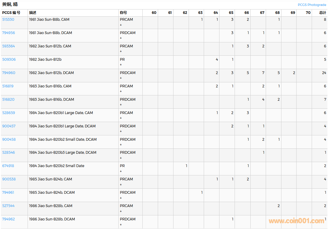PCGS硬幣評(píng)級(jí)數(shù)量報(bào)告( ..
