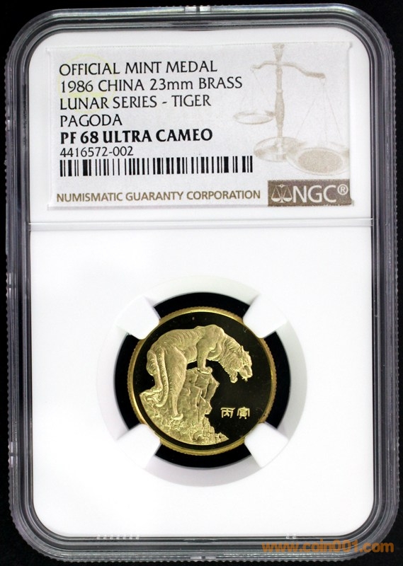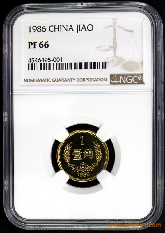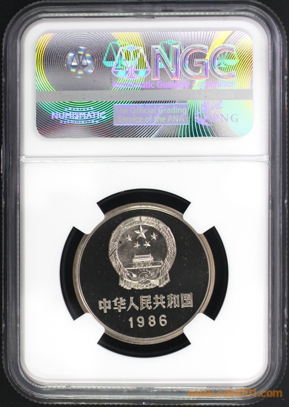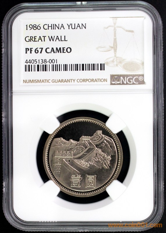 1986年精制長城幣(7幣1章的NGC評級)是中國現(xiàn)代流通幣發(fā)行量(660套)最少的品種,頂級大珍藏品.