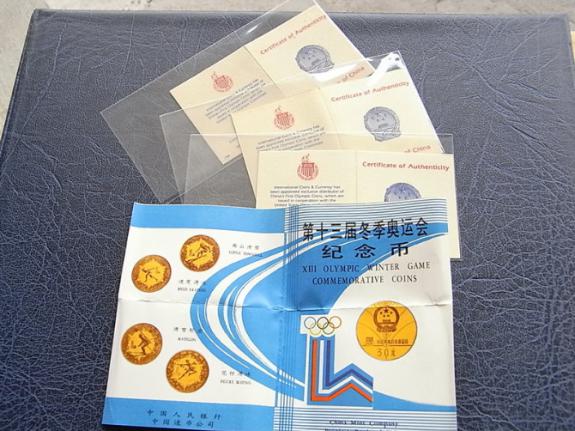 二、第十三屆冬季奧林匹克運(yùn)動(dòng)會(huì)紀(jì)念銅幣。該幣于1980年6月發(fā)行,1套4枚,面值1元,直徑33毫米,重12克,重24克。正面圖案:內(nèi)緣上方為國(guó)徽;中下有兩條橫線,橫線上為奧運(yùn)五環(huán)、國(guó)旗及“中國(guó)奧林匹克委員會(huì)”字樣;橫線下方為面值“1元”。其背景輔以裝飾曲線,似一束伸展的花枝。背面圖案:分別為滑雪、滑冰、花樣滑冰、滑雪射擊,均鑄有“第十三屆冬季奧運(yùn)會(huì)”,“1980”字樣及裝飾花卉。