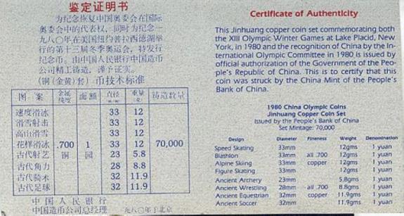 中國(guó)奧林匹克委員會(huì)紀(jì)念銅幣:70000套
