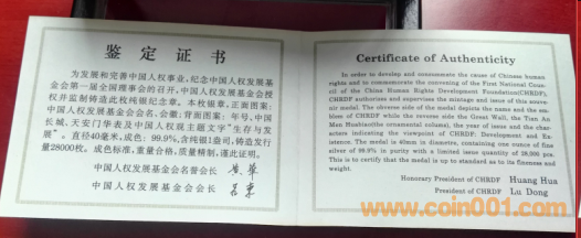 1997年人權(quán)紀(jì)念銀章1盎 ..
