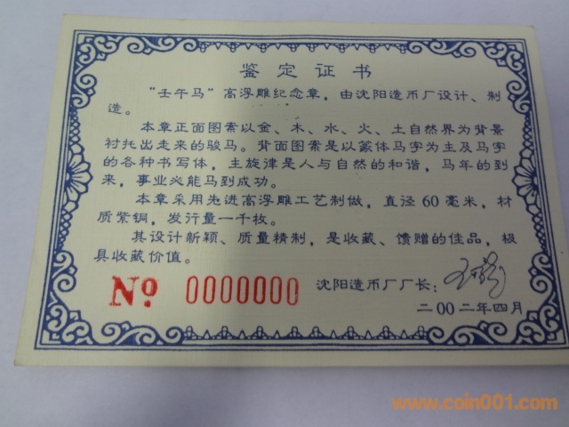 沈陽造幣廠60毫米馬大 ..