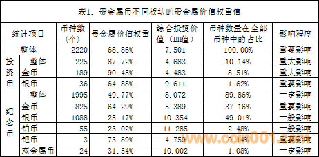 3.貴金屬價值權(quán)重值分布的典型幣種