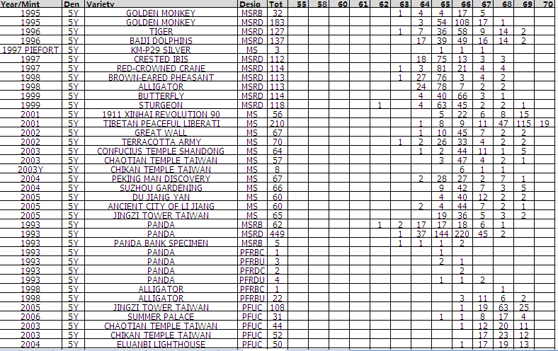 NGC硬幣評級分?jǐn)?shù)分布 ..
