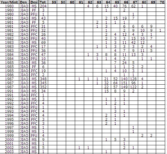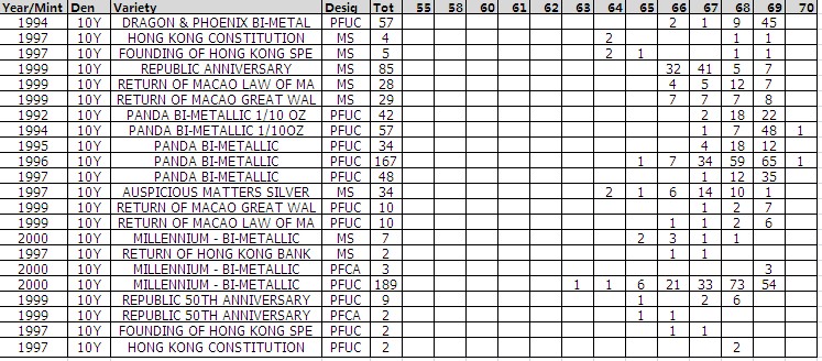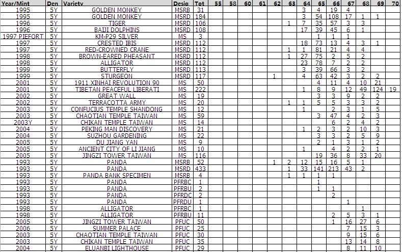 NGC硬幣評級分?jǐn)?shù)分布 ..