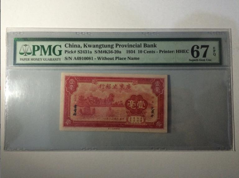 【民國廣東省壹毫PMG67 ..