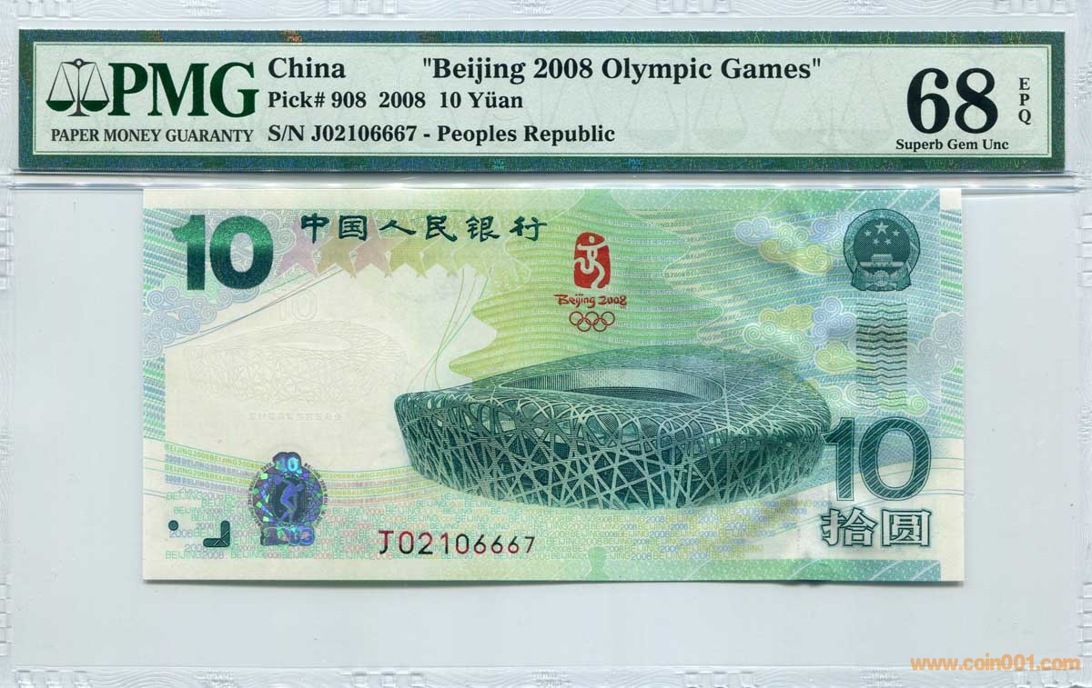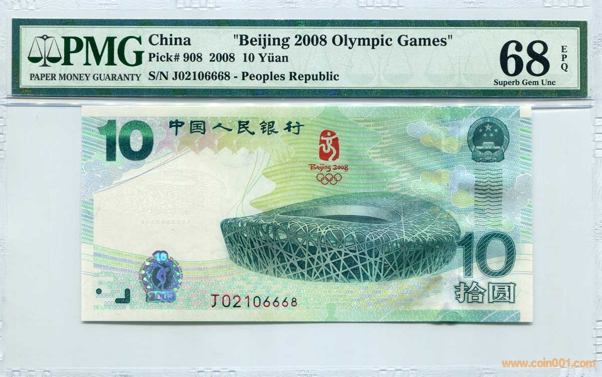 PMG 68分 EPQ 奧運(yùn)鈔 綠 ..