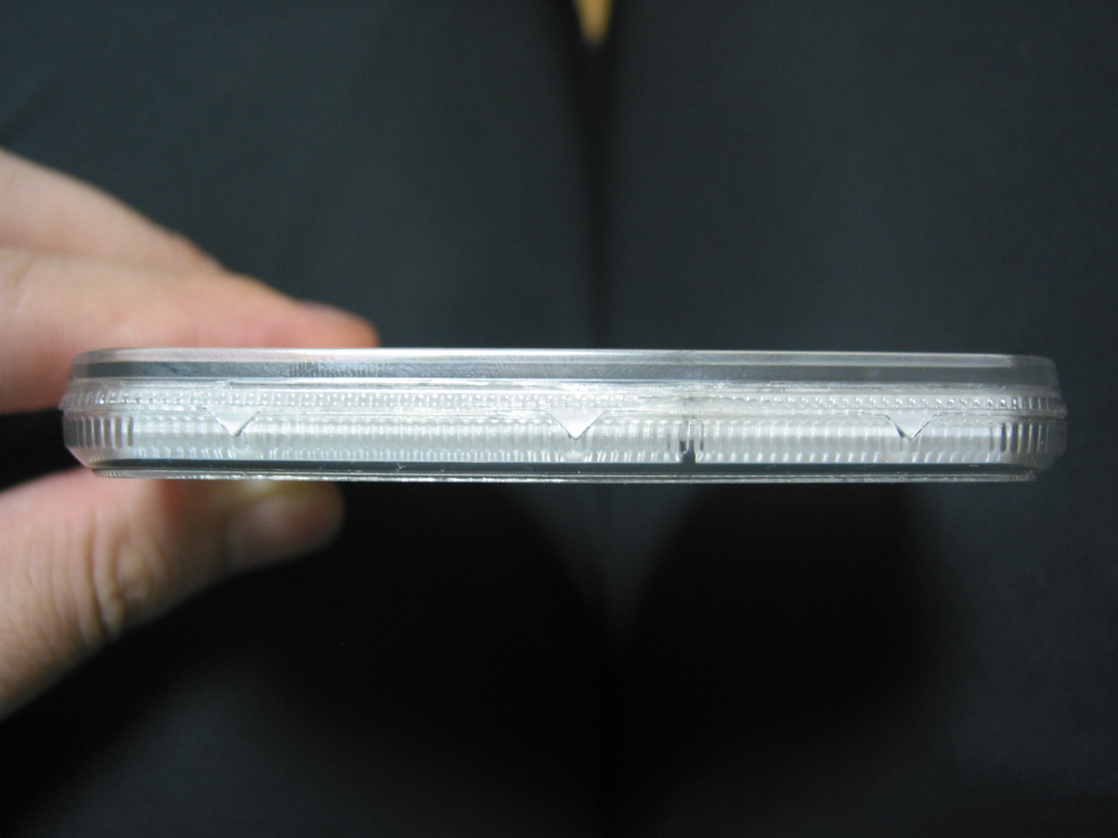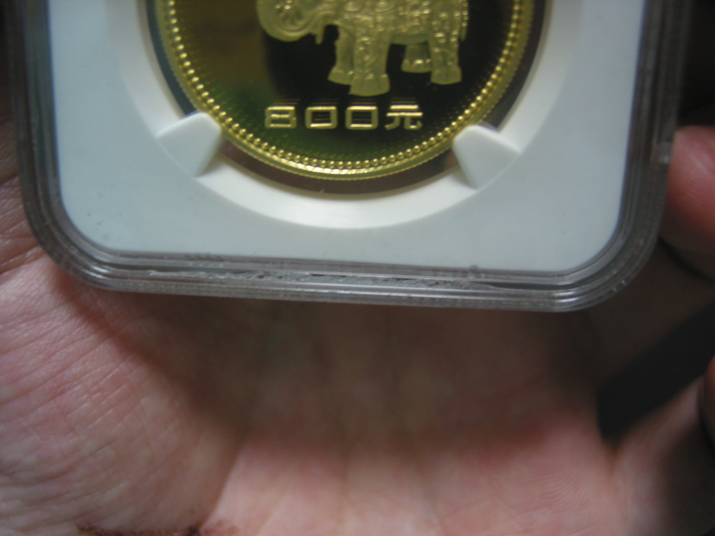 此幣的外盒,感覺非常粗糙,有多處有類似毛邊的東西,這與我手頭上的低價NGC評級幣不符。