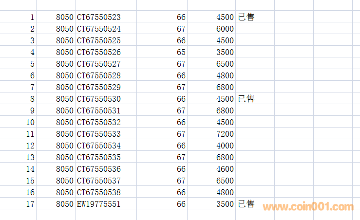 評級普通(精制)紀念幣交易
