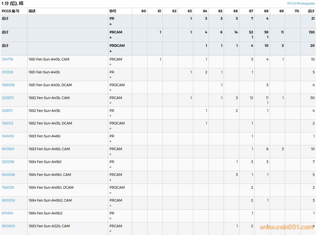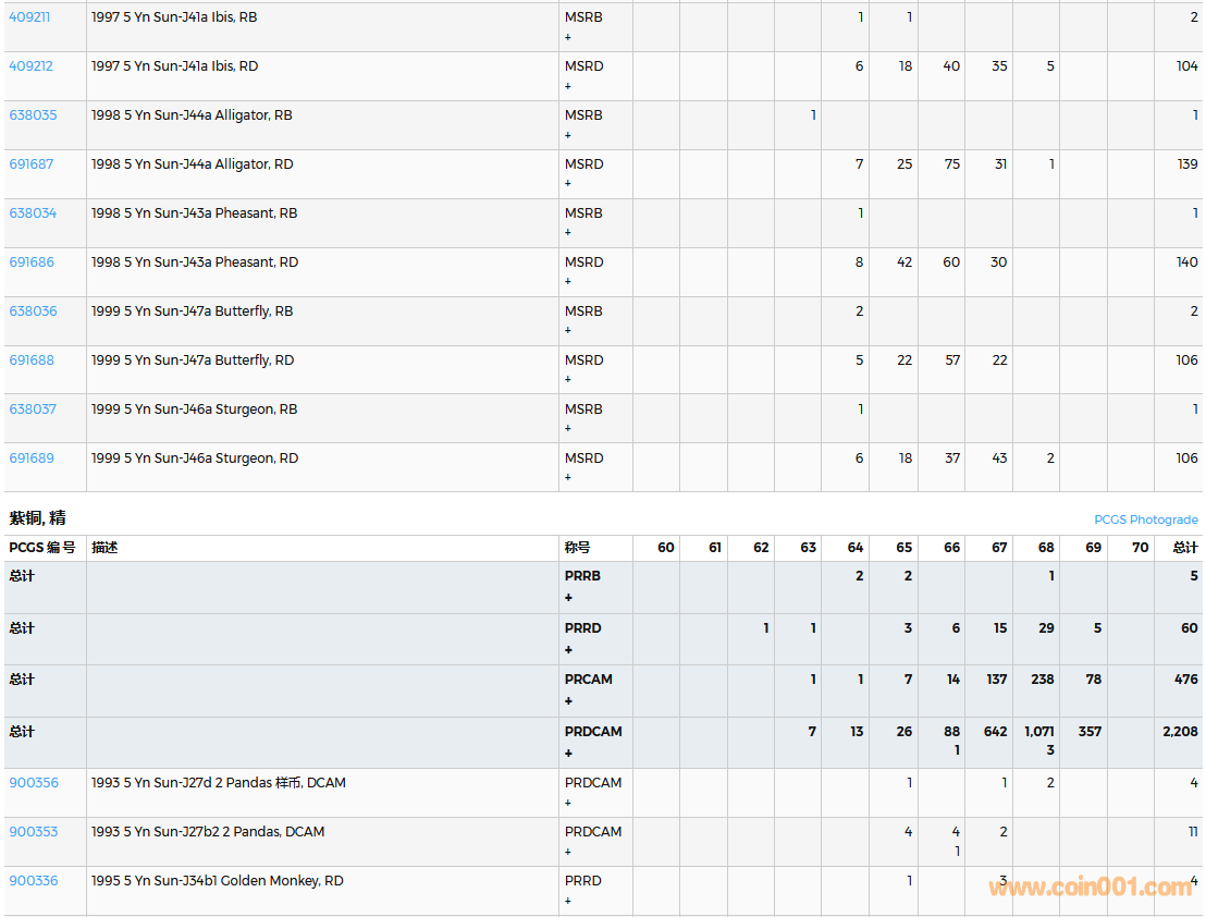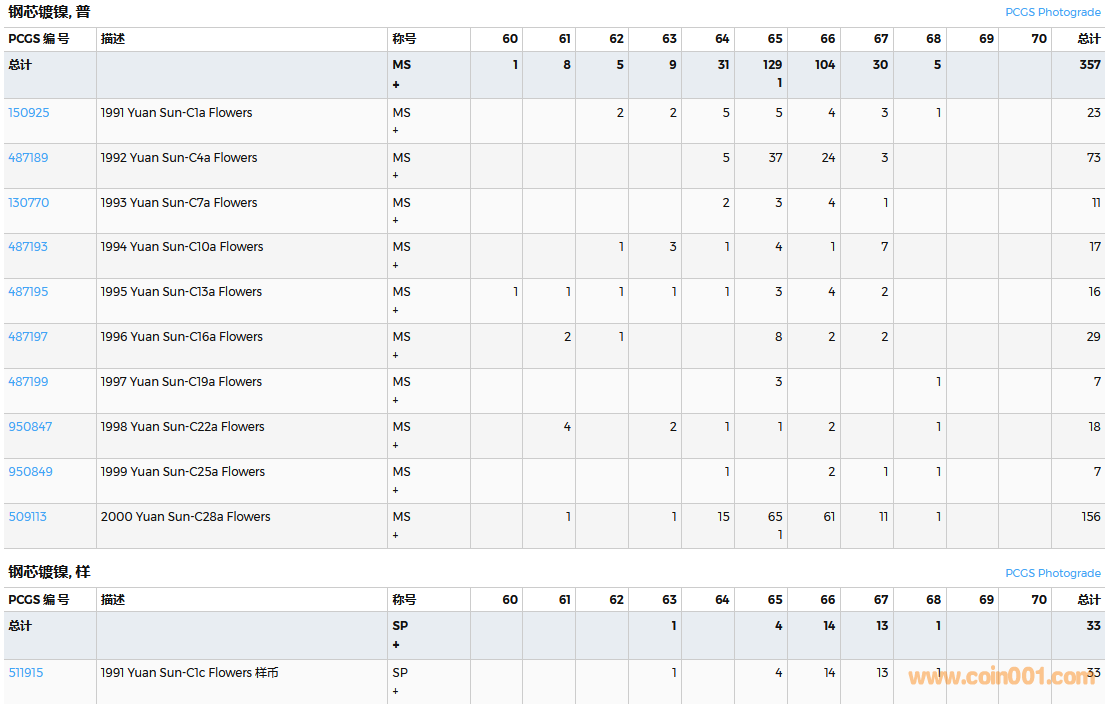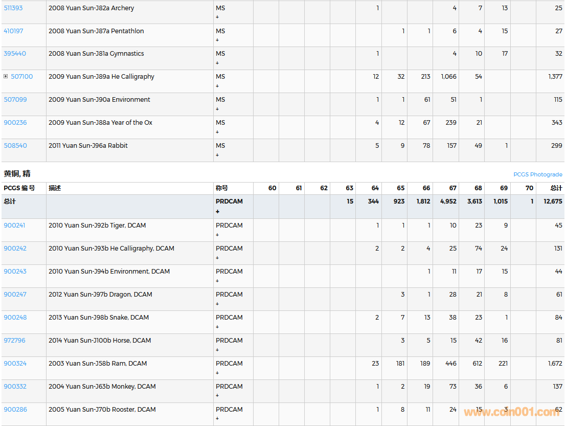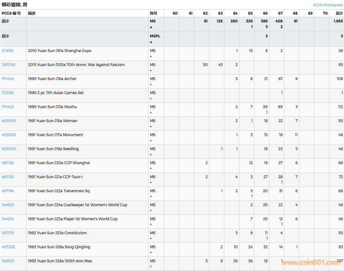 PCGS硬幣評級數(shù)量報告( ..