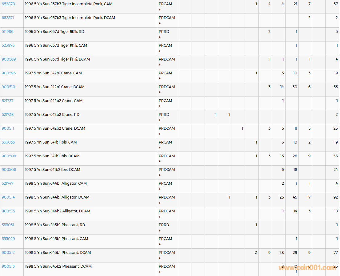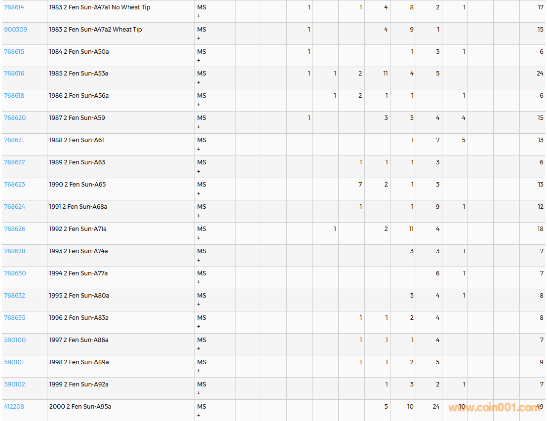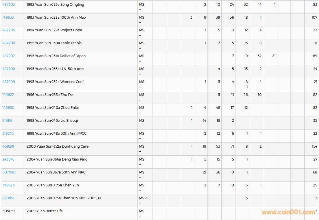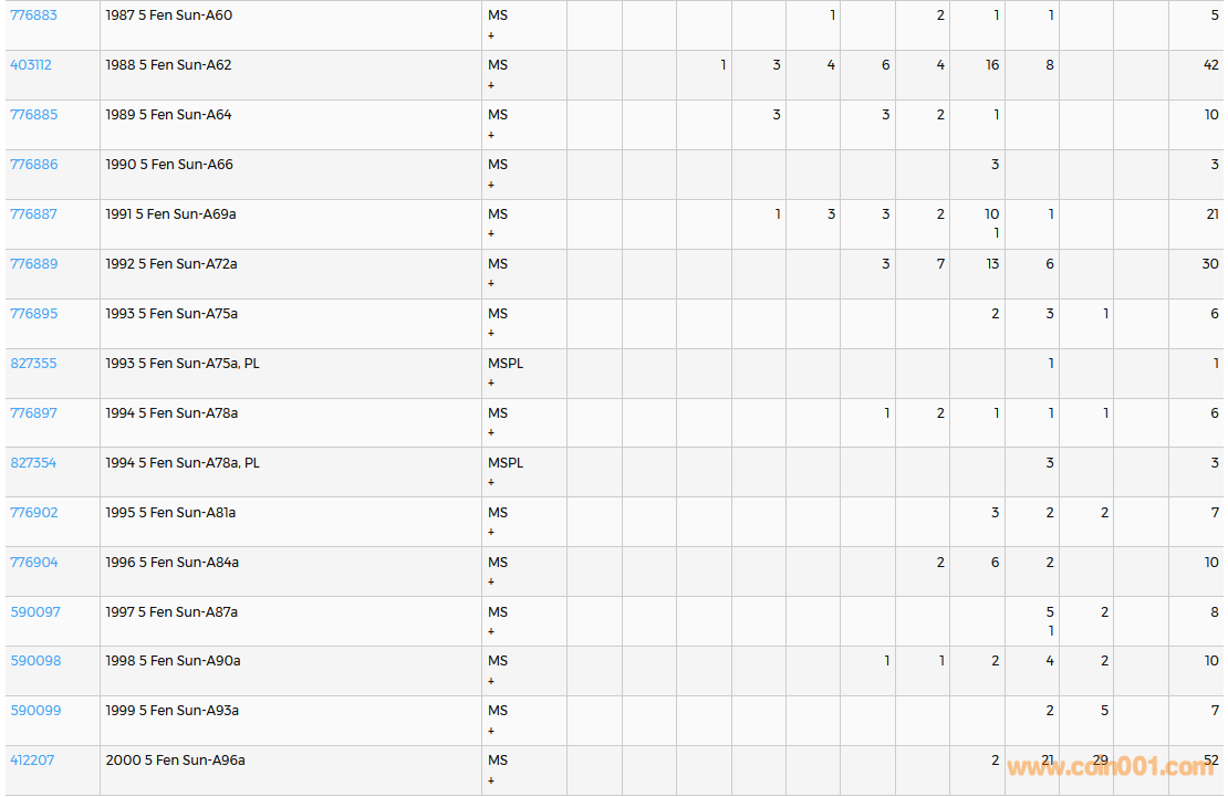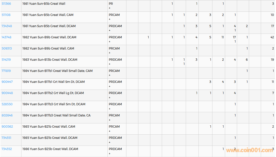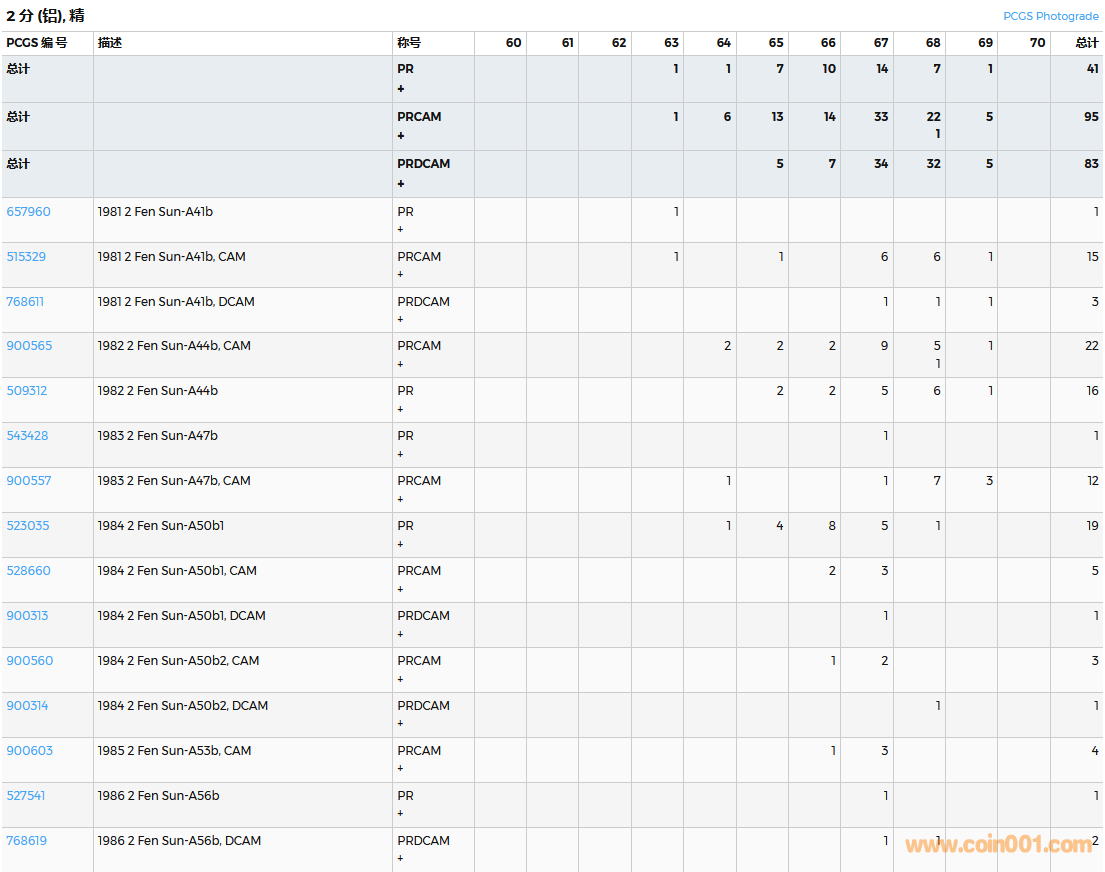 PCGS硬幣評級數(shù)量報告( ..